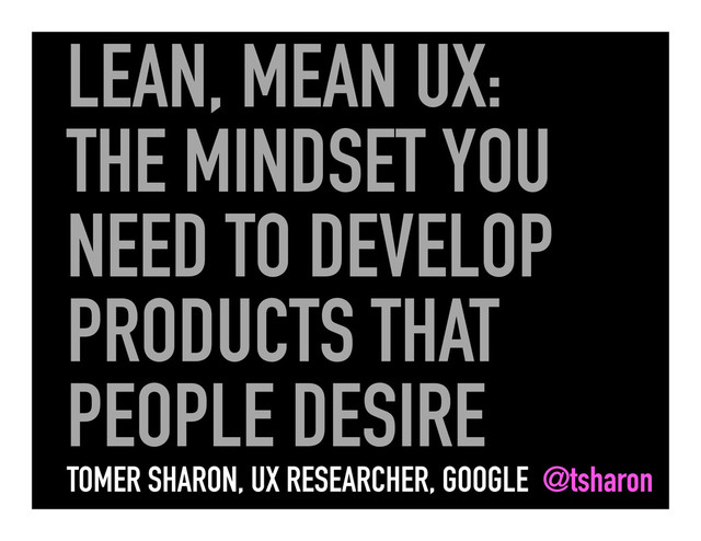 Many entrepreneurs start companies based on their personal experience — they see a problem waiting to be solved and come up with a solution. Often, they then attempt to perfectly execute the wrong plan. This class will review seven concepts that demonstrate lean and mean UX. Students will discuss the role of attitude and behavior in customer development and cover strategies that could make or break your product.