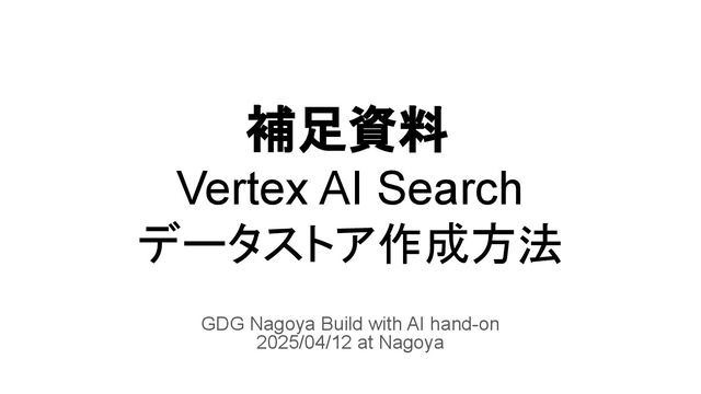 2025/04/12にGDG Nagoyaが開催した「GDG Nagoya @ Build With AI Meetup & ハンズオン」のハンズオンセッションで質問を受けた Vertex AI Search データストア作成方法についてまとめた資料です。