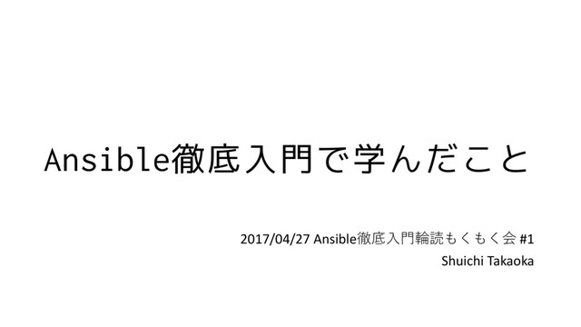 Ansible徹底入門で学んだこと 2017/04/27 Ansible徹底⼊⾨輪読もくもく会 #1 Shuichi Takaoka