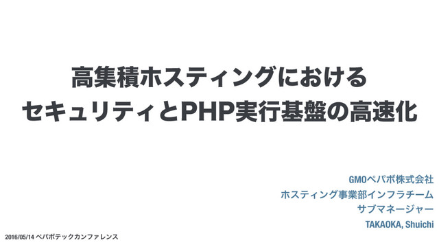 2016/05/14 ϖύϘςοΫΧϯϑΝϨϯε ߴूੵϗεςΟϯάʹ͓͚Δ ηΩϡϦςΟͱ1)1࣮ߦج൫ͷߴԽ GMOϖύϘגࣜձࣾ ϗεςΟϯάࣄۀ෦ΠϯϑϥνʔϜ αϒϚωʔδϟʔ TAKAOKA, Shuichi