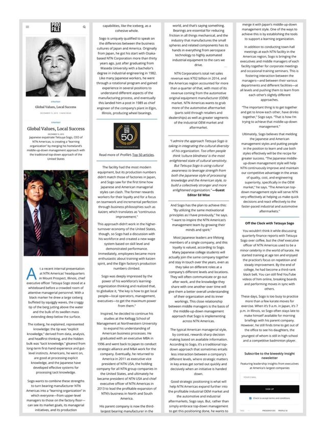 Profile Magazine for Q1 2016, “Global Values, Local Success” (Published in Jan. 2016)
