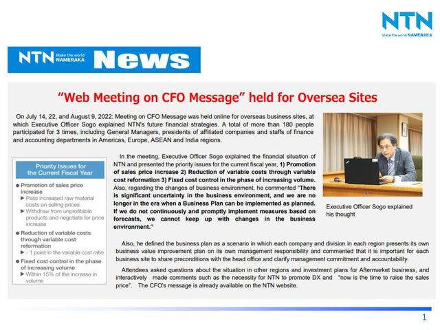Step> Thereafter, in order to respond to significant changes in the external environment, such as the COVID-19 pandemic, a shortage of semiconductors and a surge in prices of raw materials, we took risk hedge measures assuming the worst-case scenario, as exemplified by the securing of 100.0 billion yen of funds including Commitment Line Agreements with our main banks, and the issuance of Hybrid Bonds worth 50.0 billion yen. In doing so, we focused on thorough Fixed Cost Reduction (42.7 billion yen) in the two-year period until the end of FY2020. <2nd Step> Since FY2021, we have accelerated 3 Drastic Transformation Measures and have been aiming to reduce interest-bearing debt and resume stable distribution of dividends through Free Cash Flow Control while implementing measures to Reduce Variable Costs by approximately 7.0 billion yen per year and Control Fixed Costs according to the sales volume (within 15% of an increase in sales volume). The overview of NTN Revitalization Scenario formulated in FY2019 was provided in the CFO Message two years ago.