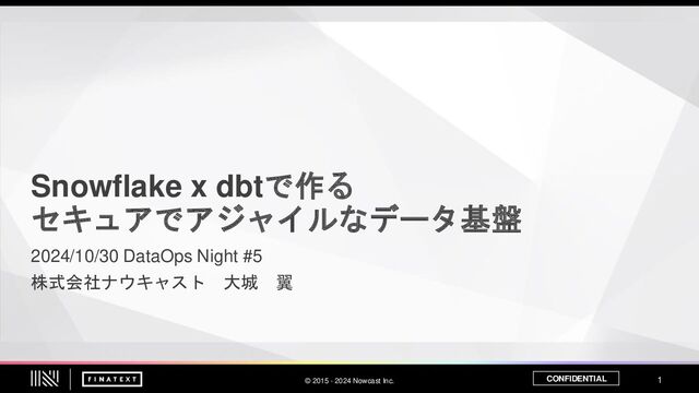 2年ほど前にSnowflake中心のデータ基盤に移行を決め、 開発を進めてきた ◦ Snowflake×dbt×Terraformでモダンなデータ基盤開発してみた | by Kevinrobot34 | The Finatext Tech Blog • 新たな基盤でのパイプライン構築事例も増えてきた ◦ Amazon AuroraとSnowflakeをDynamic Tableを用いてリアルタイ ム連携したお話 - The Finatext Tech Blog ◦ Streamlit Bootcamp #1 ◦ Snowflake x dbt x Terraform マルチデータプロダクト基盤 [DataOps Night #4] - Speaker Deck • 今日は私が所属するチームが取り組んでいるパイプライ ン構築事例を紹介します Snowflake x dbt x Terraformのマルチデータプロダクト基盤