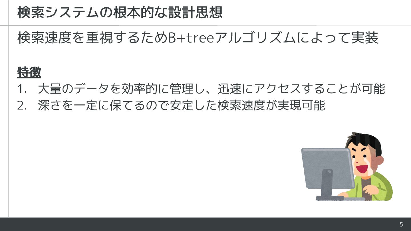 多くのユーザーが経験するこの「検索ヒットしない」問題。実は、この検索システムは「検索速度」を最優先する特定のアルゴリズム(B+tree)を採用しているため、少しの誤字・脱字も許容しにくいというジレンマを抱えていました 。