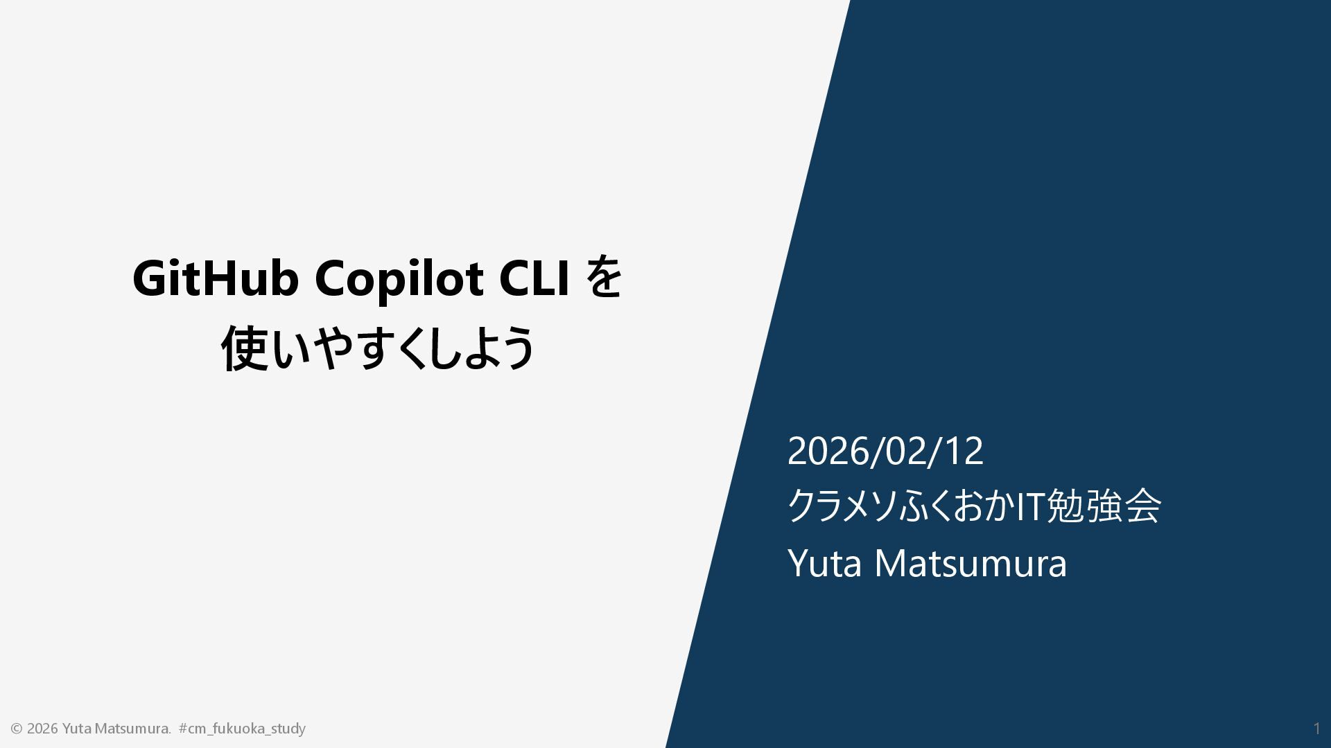 GitHub Copilot CLI を 使いやすくしよう 2026/02/12 クラメソふくおかIT勉強会 Yuta Matsumura ©