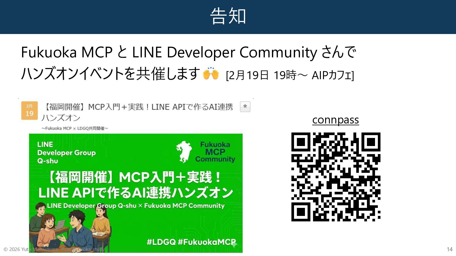 告知 Fukuoka MCP と LINE Developer Community さんで ハンズオンイベントを共催します [2月19日