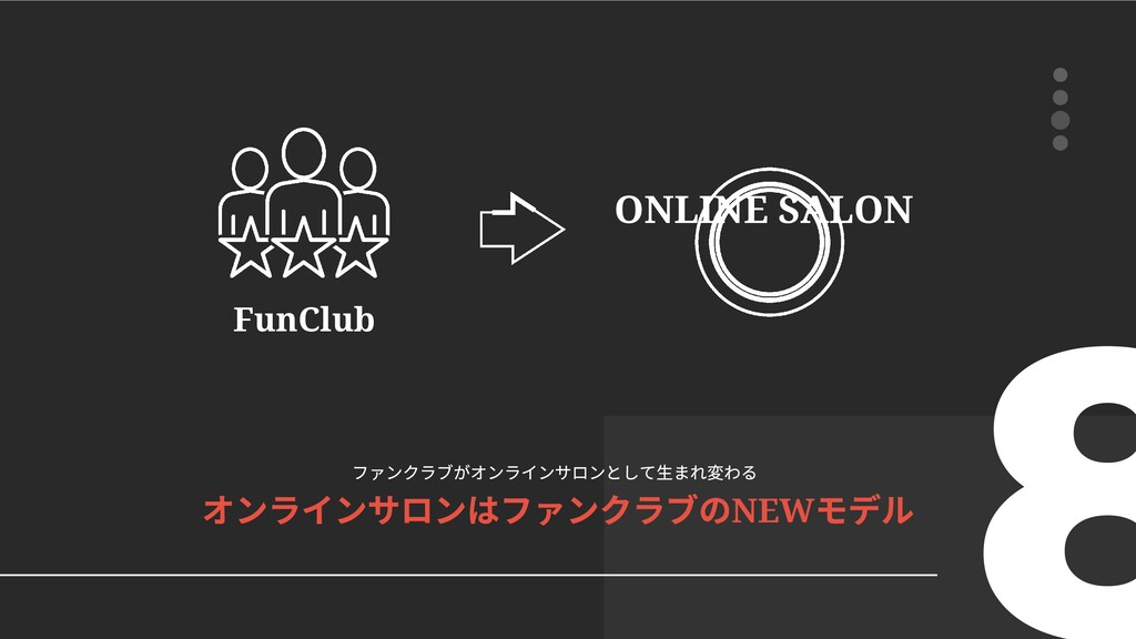 そして一般の私達でも、誰でも多くの人に注目される新たな時代へと変化している。そしてファンクラブは特別な人やグループだけではなく、私たち誰もが簡単に持つ事ができるオンラインサロンへと形を変え成長している。