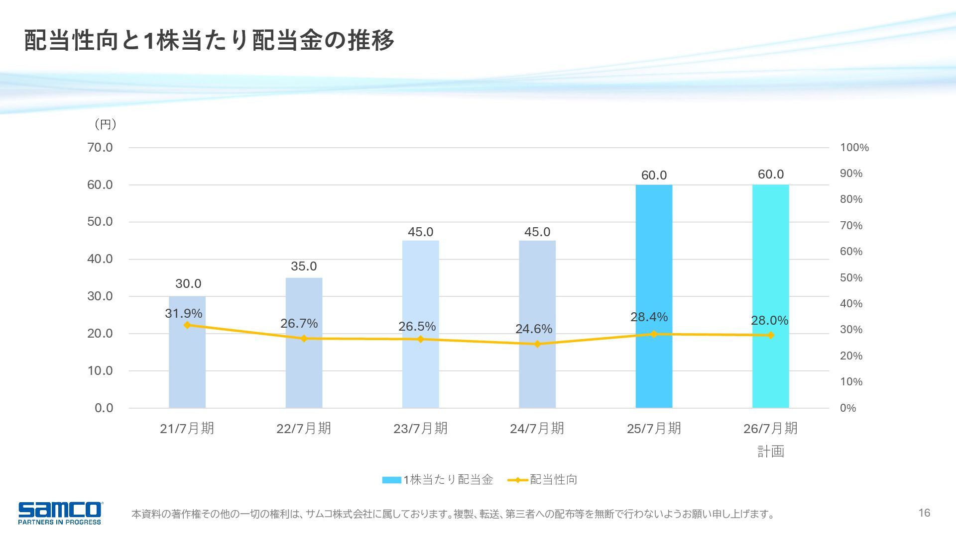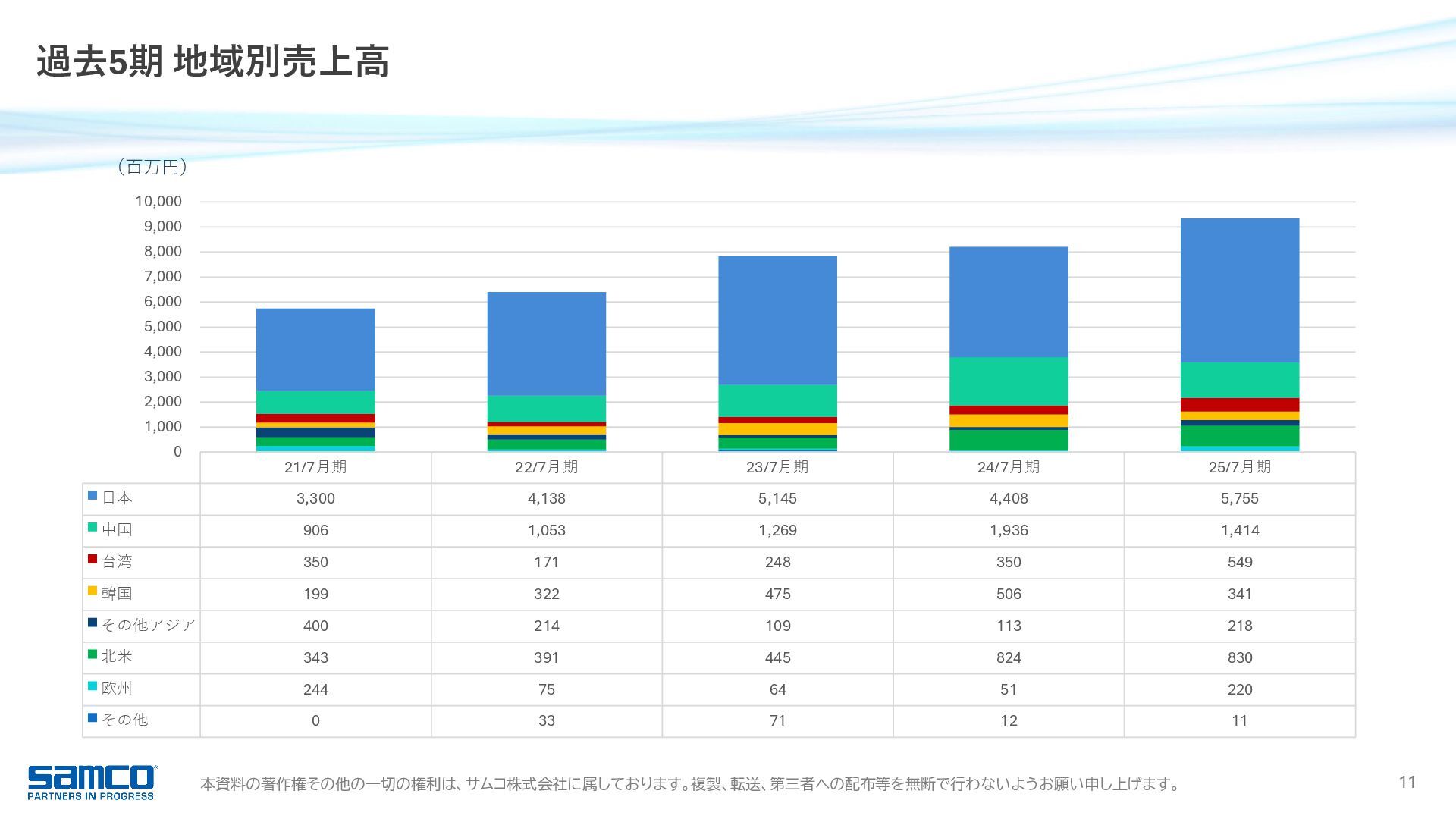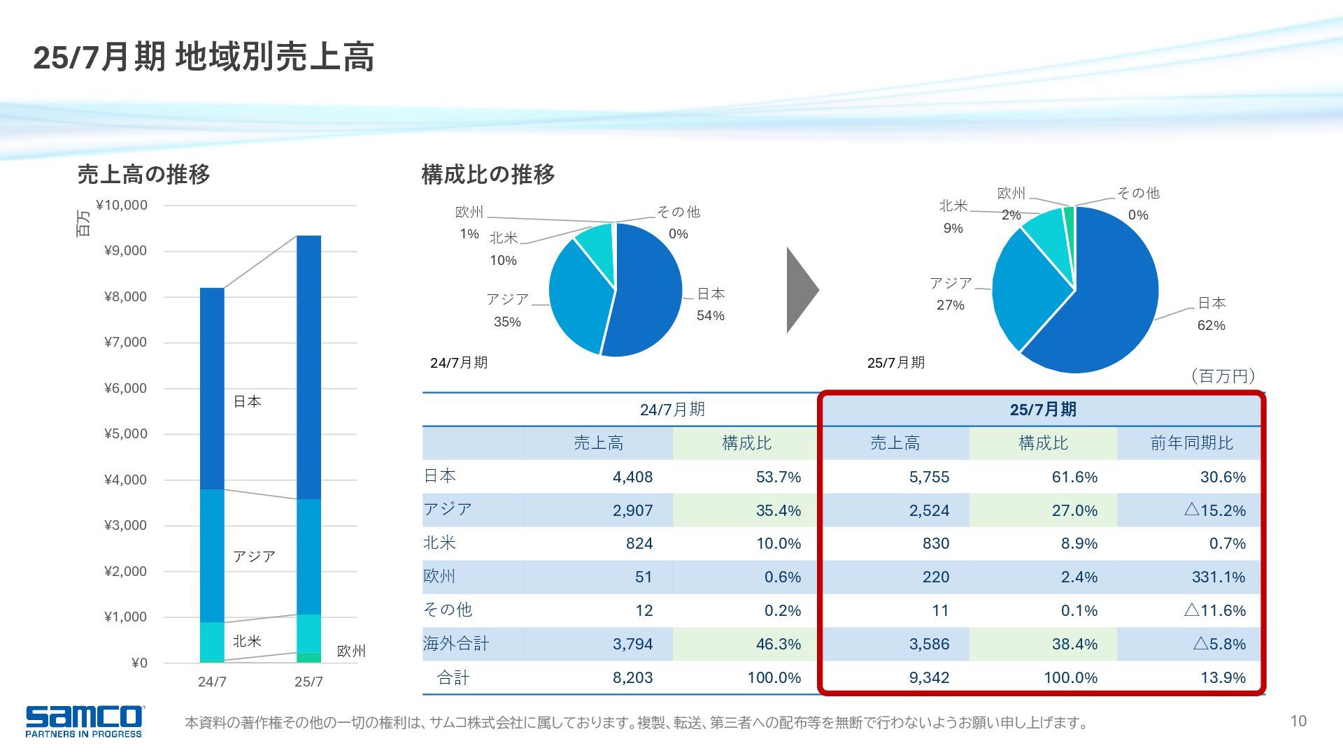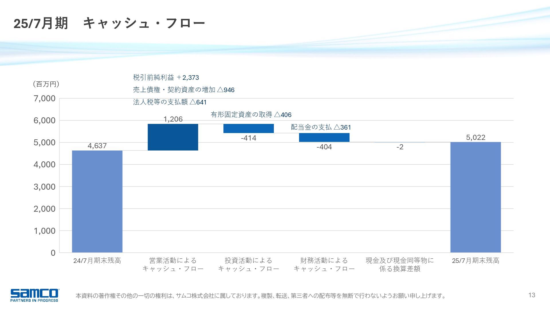 7,830 8,203 9,342 0 2,000 4,000 6,000 8,000 10,000 当期純利益 16.9 億円 前年同期比 +15.3% 6期連続増益・過去最高 受注高 91.0 億円 前年同期比 +11.8% 過去最高 受注残高 51.2 億円 前年同期比 △4.4% 営業利益 23.4 億円 前年同期比 +16.1% 5期連続増益・過去最高 989 1,371 1,858 2,017 2,342 0 500 1,000 1,500 2,000 2,500 経常利益 23.7 億円 前年同期比 +13.6% 6期連続増益・過去最高 1,044 1,481 1,927 2,088 2,373 0 500 1,000 1,500 2,000 2,500 6,817 8,401 8,221 8,147 9,104 0 2,000 4,000 6,000 8,000 10,000 3,027 5,027 5,418 5,361 5,124 0 1,000 2,000 3,000 4,000 5,000 6,000 25/7月期 業績ハイライト 755 1,052 1,366 1,471 1,697 0 500 1,000 1,500 2,000
