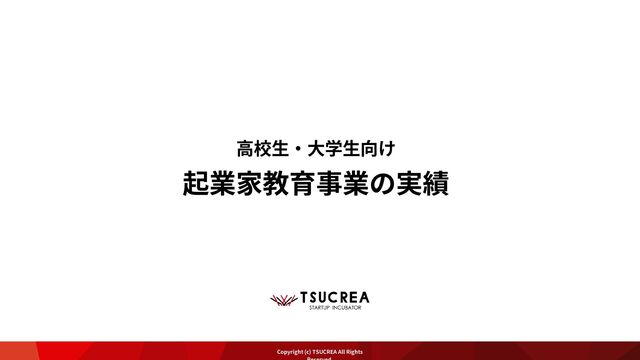 起業家教育事業の実績 高校生・大学生向け Copyright (c) TSUCREA All Rights