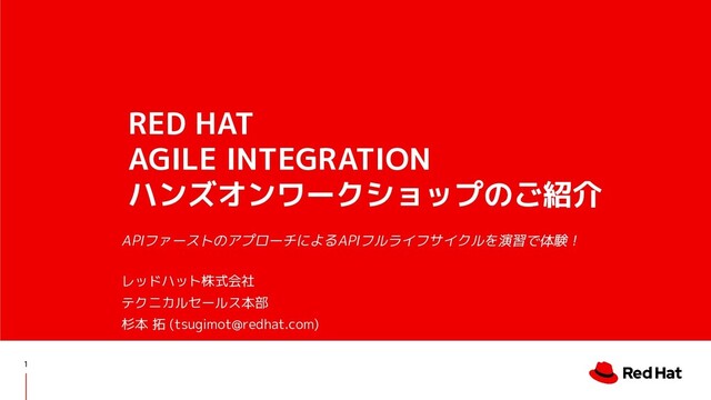 API Designer Microcks SSO “Agile Integration”という考え方について Agile Integrationを実現するRed Hat製品概要 連携担当者向けトラック OpenShift Red Hat Fuse 3scale API Designer Microcks SSO 3