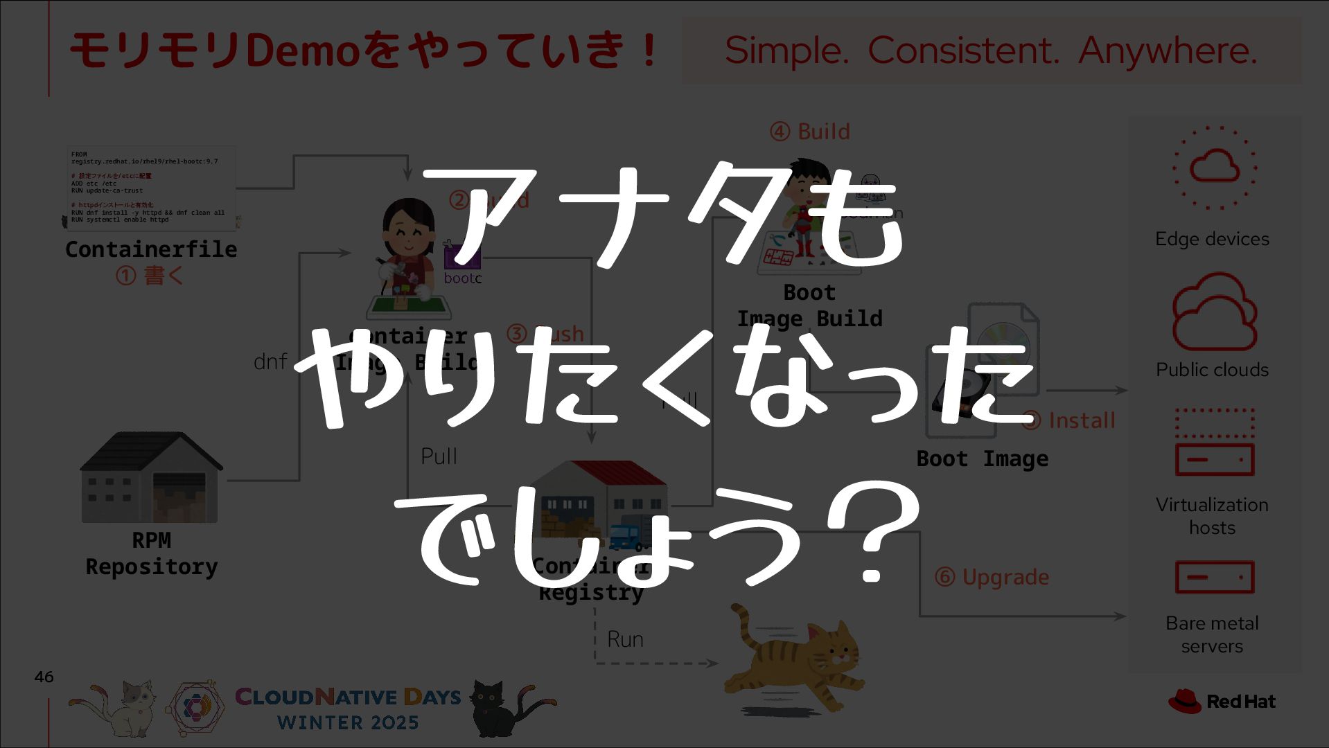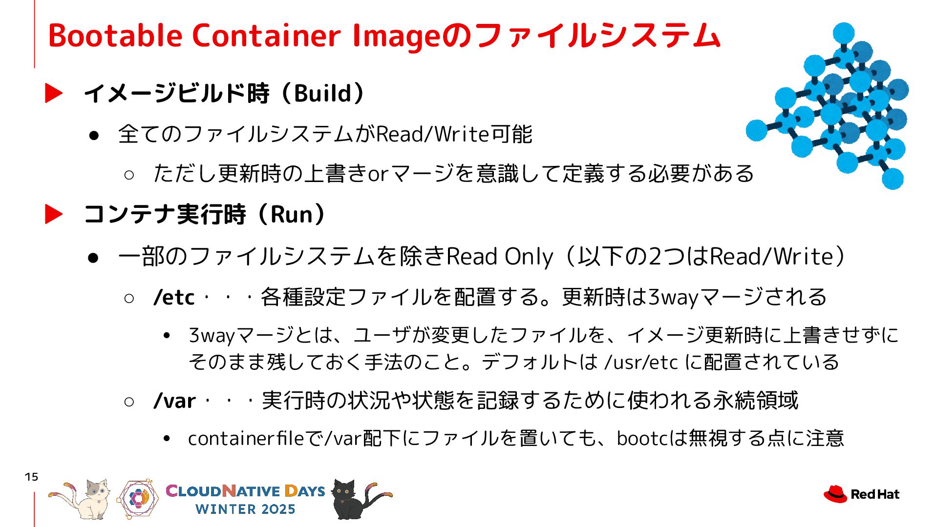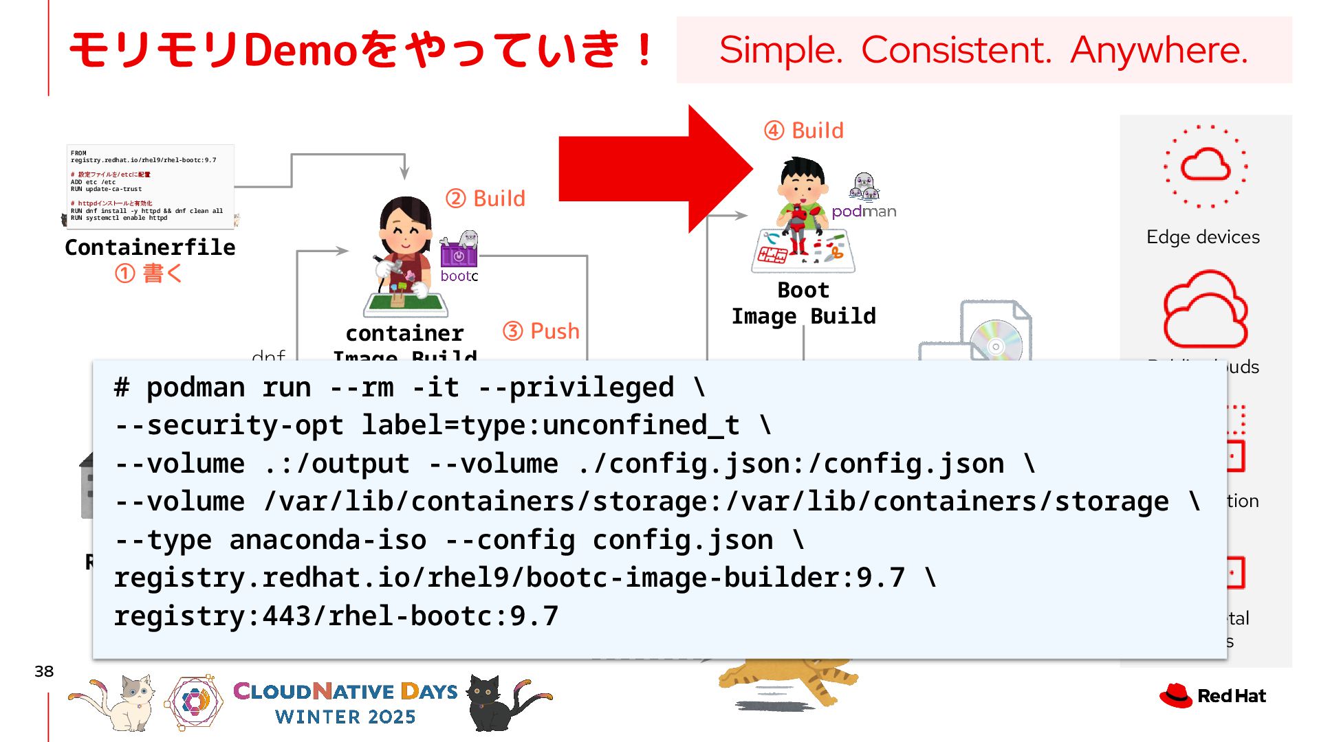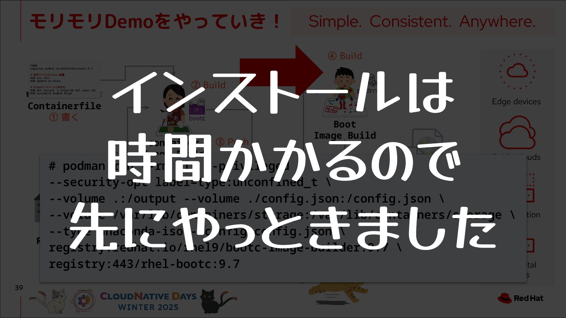 CNDW2025における Track B 2025/11/18 15:20-16:00「OSだってコンテナしたい❗Image Modeが切り拓くLinux OS運用の新時代」での登壇資料です。
