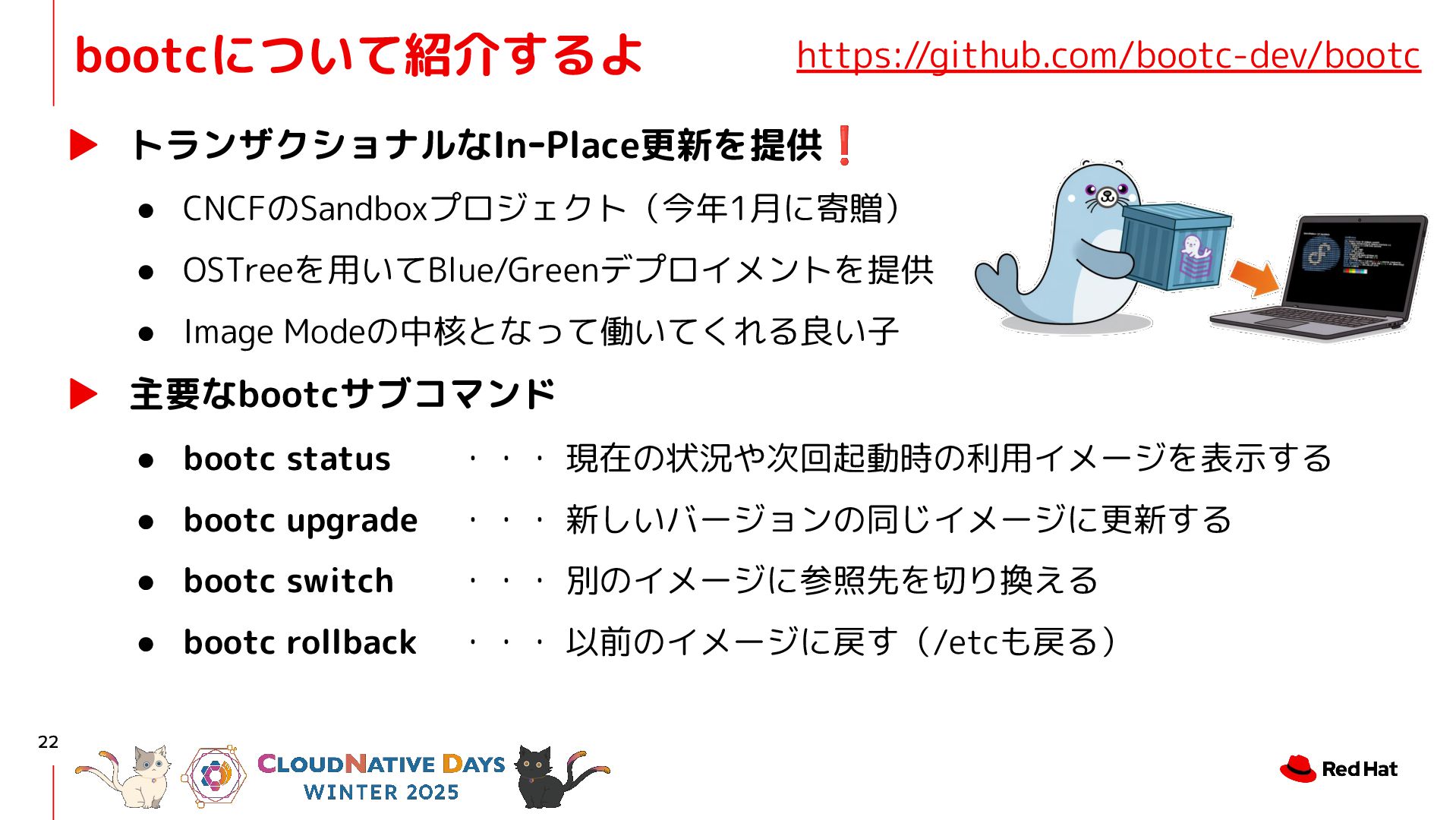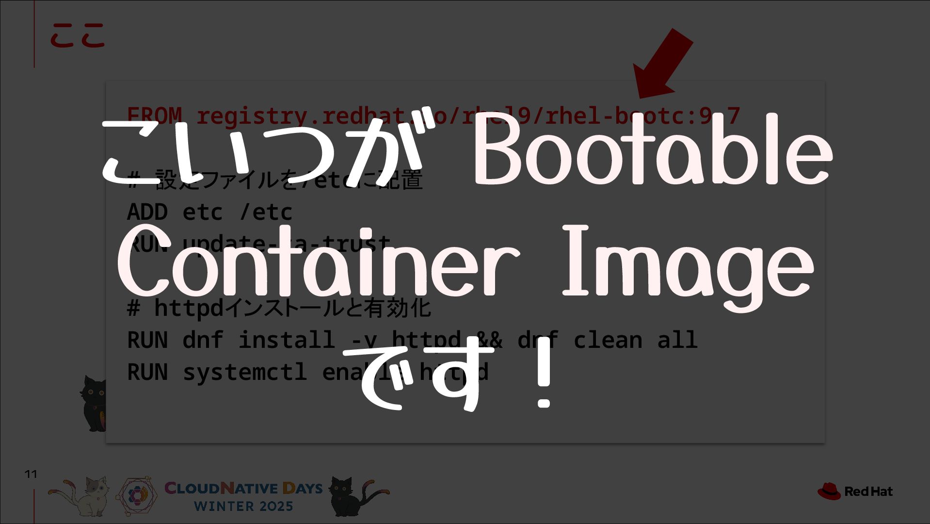 皆さんは「Image mode」または「Bootable Container Image」という用語を聞いたことがあるでしょうか?ブートできるコンテナ・・・とは???となる方もいらっしゃると思います。