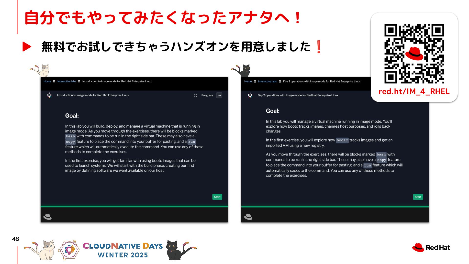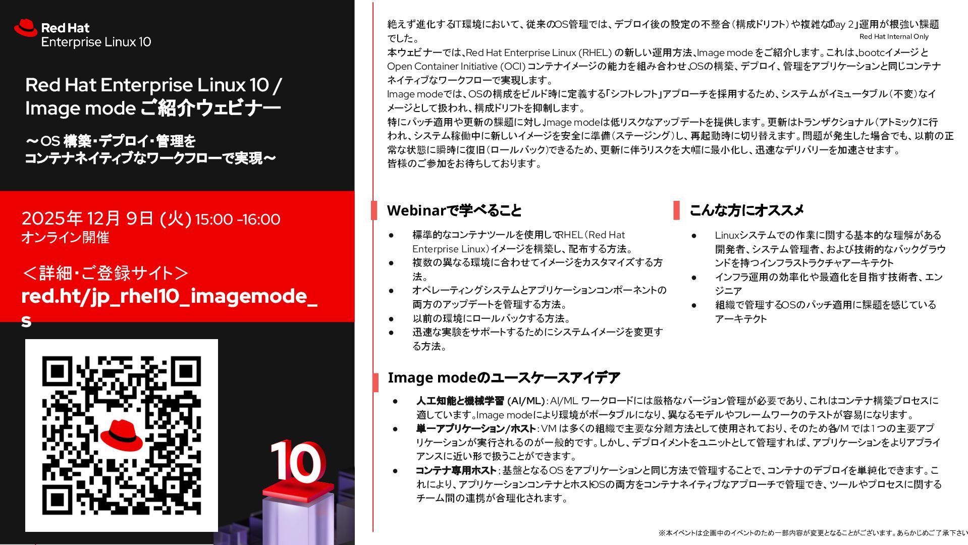 本セッションでは、Image Modeの概要から実現している仕組み、使い方、活用方法など、具体的な操作方法と共にご紹介します。まだ貴方の知らない新しいLinuxの姿を一緒に見ていきましょう!