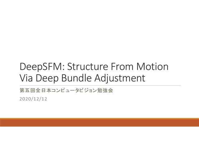 GTのCamera Motionを使用 Base-SIFT SIFT keypoint Matching, 8-point algorithm and RANSAC, minimized the reprojection error using the ceres library Base-FF Flow Field optical flow, 8-point algorithm and RANSAC, minimized the reprojection error using the ceres library Base-Matlab Plane Sweep Stereo, KLT(matlab), 5-point algorithm and RANSAC DeMoN “DeMoN: Depth and Motion Network for Learning Monocular Stereo” LS-Net “LS-Net: Learning to Solve Nonlinear Least Squares for Monocular Stereo” BANet “BA-NET: DENSE BUNDLE ADJUSTMENT NETWORKS” “DeMoN: Depth and Motion Network for Learning Monocular Stereo”から引用