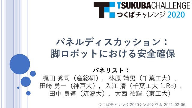 パネルディスカッション企画の背景 1 つくばチャレンジ シンポジウム 2020 2021-02-06 現状の遵守事項は、車輪型ロボットにおける議論に基づいて策定されている 飯島+, “つくばチャレンジ実施における安全確保の努力”,