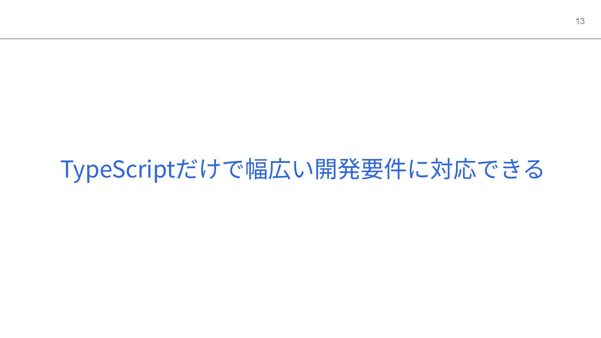 TypeScriptだけで幅広い開発要件に対応できる 13