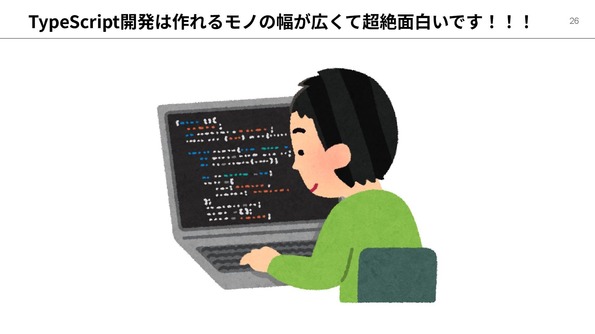 TypeScript開発は作れるモノの幅が広くて超絶⾯⽩いです!!! 26