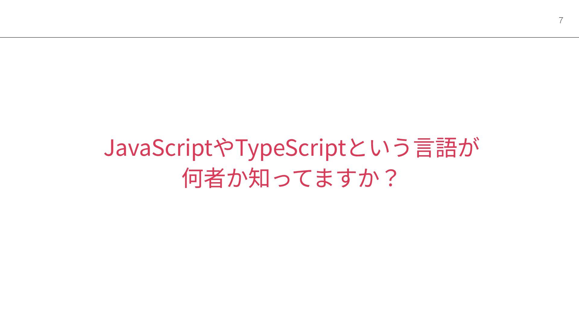 JavaScriptやTypeScriptという⾔語が 何者か知ってますか? 7