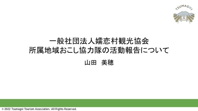© 2022 Tsumagoi Tourism Association. All Rights Reserved. 山田 美穂 出身:愛知県一宮市