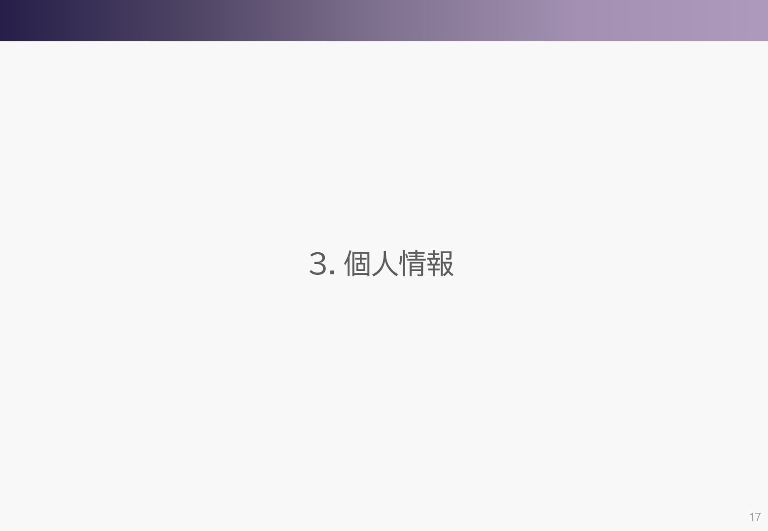 6. 21 3.個人情報 PMS・サイトコントローラー で保有する情報 氏名:JTB 一郎 性別:男性 生年月日:1990/1/1 住所:東京都千代田区 霞ヶ関1−1
