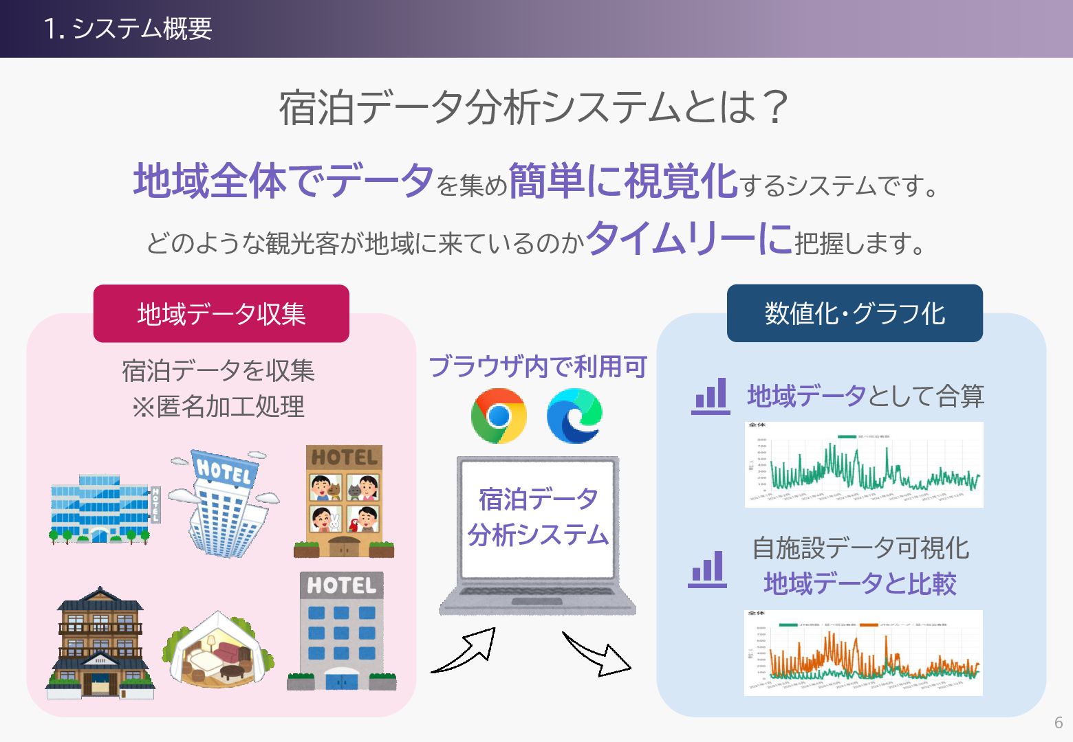 1. 7 1.システム概要 地域 合算 データ 属性・傾向など 情報を収集 宿泊事業者 分析データ提供 SNS