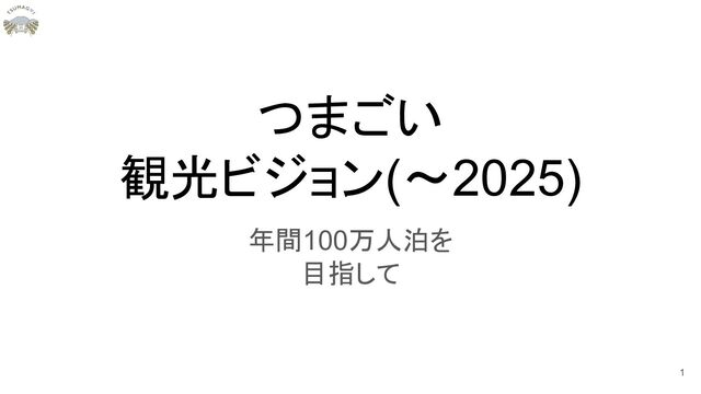 つまごい 観光ビジョン(~2025) 年間100万人泊を 目指して 1