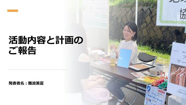 活動内容と計画の ご報告 発表者名:難波美夏