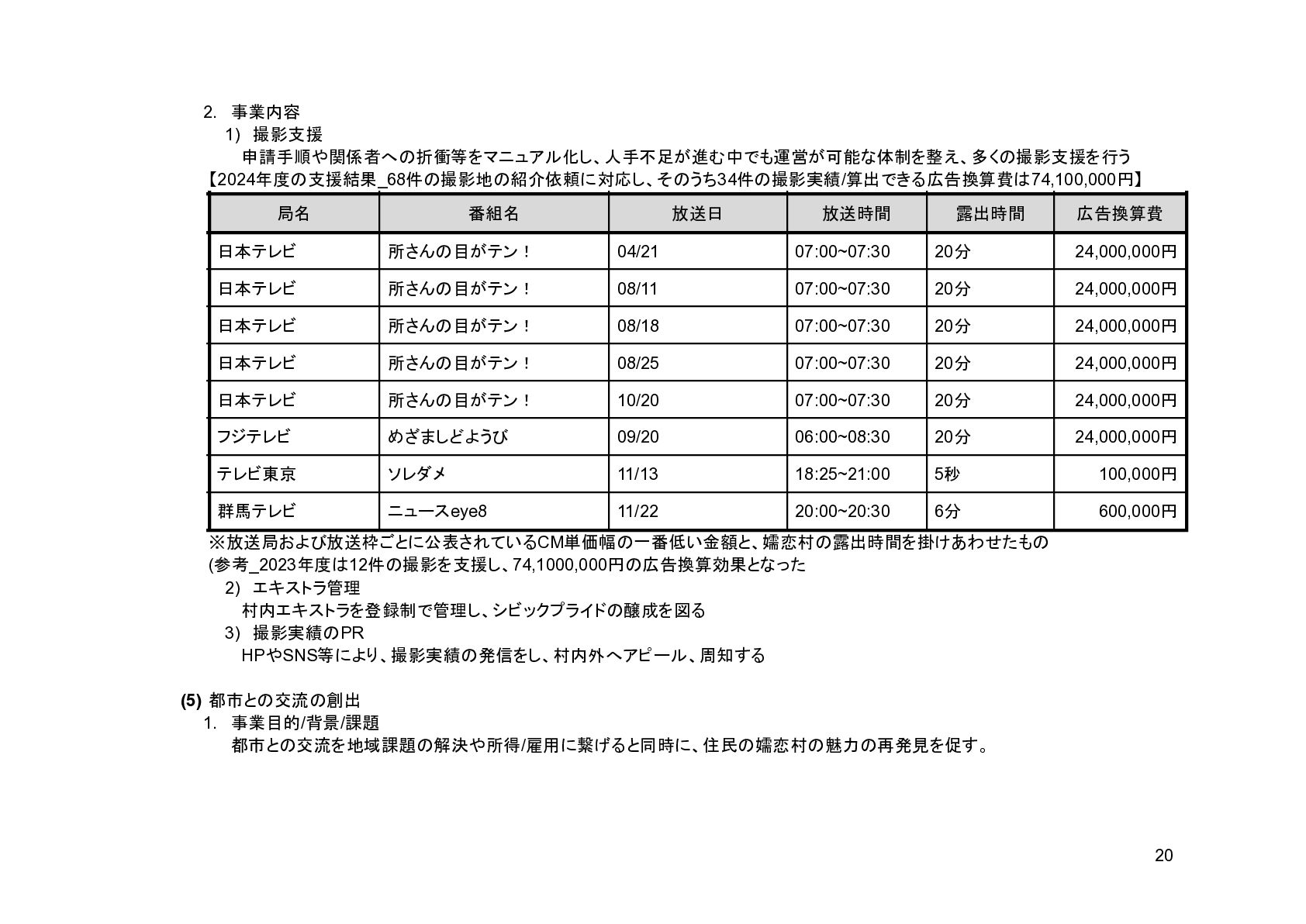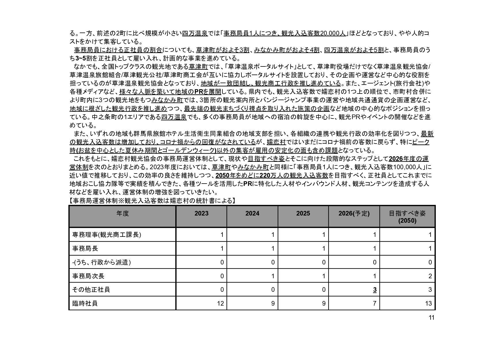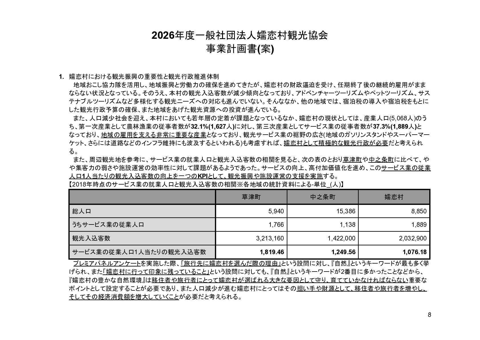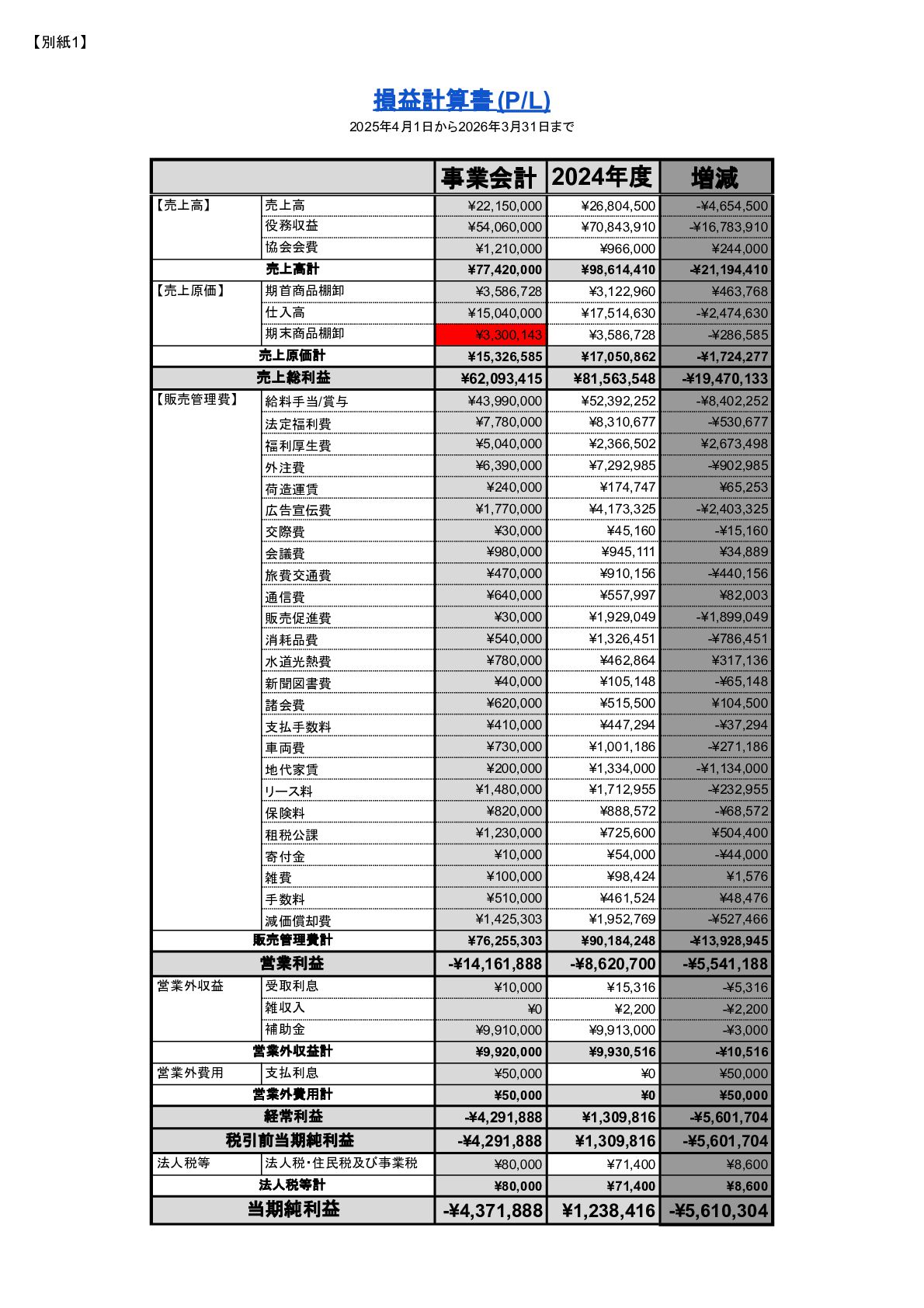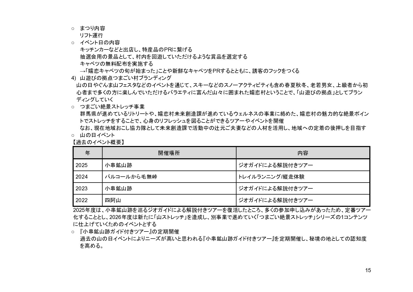 補助事業費 委託事業費 (観光商工課 ) 委託事業費 (未来創造課 ) 委託事業費 (マラソン) その他の事業 事業会計 管理費 観光協会 運営事業 嬬恋村ブランドづくり 誘客と受入体制づくり 持続可能な体制づくり 持続可能な体制づくり 地域おこし協力隊 管理事業 キャベツマラソン事業 産業推進 事業 浅間高原 シャクナゲ園祭り 旅行 事業 管理 アウトドア 資源づくり キャベツの文化 づくり 愛妻の文化 づくり FC運営 都市との交流創出 広域観光づくり 情報受発信 体制づくり 観光データの整備 観光まちづくりの推進 ¥94,660,000 ¥106,050,000 -¥11,390,000 ¥10,180,000 ¥2,800,000 ¥0 ¥2,300,000 ¥3,980,000 ¥2,280,000 ¥3,410,000 ¥23,340,000 ¥1,600,000 ¥1,740,000 ¥1,510,000 ¥2,500,000 ¥20,070,000 ¥1,500,000 ¥2,020,000 ¥79,230,000 ¥15,430,000 協会会費 ¥1,180,000 ¥1,210,000 -¥30,000 ¥1,180,000 ¥0 ¥0 ¥0 ¥0 ¥0 ¥0 ¥0 ¥0 ¥0 ¥0 ¥0 ¥0 ¥0 ¥0 ¥1,180,000 ¥0 売上高 ¥23,300,000 ¥22,150,000 ¥1,150,000 ¥0 ¥90,000 ¥0 ¥0 ¥0 ¥0 ¥0 ¥120,000 ¥0 ¥0 ¥0 ¥0 ¥20,070,000 ¥1,500,000 ¥1,520,000 ¥23,300,000 ¥0 前期からの繰越金 ¥15,420,000 ¥9,710,000 ¥5,710,000 ¥0 ¥0 ¥0 ¥0 ¥0 ¥0 ¥0 ¥0 ¥0 ¥0 ¥0 ¥0 ¥0 ¥0 ¥0 ¥0 ¥15,420,000 役務収益 ¥45,750,000 ¥54,060,000 -¥8,310,000 ¥0 ¥2,710,000 ¥0 ¥2,300,000 ¥3,980,000 ¥2,280,000 ¥3,410,000 ¥23,220,000 ¥1,600,000 ¥1,740,000 ¥1,510,000 ¥2,500,000 ¥0 ¥0 ¥500,000 ¥45,750,000 ¥0 補助金 ¥9,000,000 ¥9,910,000 -¥910,000 ¥9,000,000 ¥0 ¥0 ¥0 ¥0 ¥0 ¥0 ¥0 ¥0 ¥0 ¥0 ¥0 ¥0 ¥0 ¥0 ¥9,000,000 ¥0 受取利息 ¥10,000 ¥10,000 ¥0 ¥0 ¥0 ¥0 ¥0 ¥0 ¥0 ¥0 ¥0 ¥0 ¥0 ¥0 ¥0 ¥0 ¥0 ¥0 ¥0 ¥10,000 雑収入 ¥0 ¥0 ¥0 ¥0 ¥0 ¥0 ¥0 ¥0 ¥0 ¥0 ¥0 ¥0 ¥0 ¥0 ¥0 ¥0 ¥0 ¥0 ¥0 ¥0 短期借入金 ¥0 ¥9,000,000 -¥9,000,000 ¥0 ¥0 ¥0 ¥0 ¥0 ¥0 ¥0 ¥0 ¥0 ¥0 ¥0 ¥0 ¥0 ¥0 ¥0 ¥0 ¥0 【支出の部】 勘定科目 2026年度 合計 2025年度 見込決算額 比較増減 補助事業費 委託事業費 (観光商工課 ) 委託事業費 (未来創造課 ) 委託事業費 (マラソン) その他の事業 事業会計 管理費 観光協会 運営事業 嬬恋村ブランドづくり 誘客と受入体制づくり 持続可能な体制づくり 持続可能な体制づくり 地域おこし協力隊 管理事業 キャベツマラソン事業 産業推進 事業 浅間高原 シャクナゲ園祭り 旅行 事業 管理 アウトドア 資源づくり キャベツの文化 づくり 愛妻の文化 づくり FC運営 都市との交流創出 広域観光づくり 情報受発信 体制づくり 観光データの整備 観光まちづくりの推進 ¥94,660,000 ¥106,050,000 -¥11,390,000 ¥10,490,000 ¥2,440,000 ¥190,000 ¥2,020,000 ¥3,530,000 ¥1,890,000 ¥2,970,000 ¥22,080,000 ¥2,090,000 ¥1,970,000 ¥1,380,000 ¥2,350,000 ¥15,810,000 ¥1,750,000 ¥1,470,000 ¥72,430,000 ¥22,230,000 長期借入金 ¥470,000 ¥470,000 ¥0 ¥0 ¥0 ¥0 ¥0 ¥0 ¥0 ¥0 ¥0 ¥0 ¥0 ¥0 ¥0 ¥0 ¥0 ¥0 ¥0 ¥470,000 工具器具備品 ¥350,000 ¥170,000 ¥180,000 ¥0 ¥0 ¥0 ¥0 ¥0 ¥0 ¥0 ¥0 ¥0 ¥0 ¥0 ¥0 ¥0 ¥150,000 ¥0 ¥150,000 ¥200,000 未払法人税等 ¥80,000 ¥80,000 ¥0 ¥0 ¥0 ¥0 ¥0 ¥0 ¥0 ¥0 ¥0 ¥0 ¥0 ¥0 ¥0 ¥0 ¥0 ¥0 ¥0 ¥80,000 来期への繰越金 ¥6,300,000 ¥15,410,000 -¥9,110,000 ¥0 ¥0 ¥0 ¥0 ¥0 ¥0 ¥0 ¥0 ¥0 ¥0 ¥0 ¥0 ¥0 ¥0 ¥0 ¥0 ¥6,300,000 仕入高 ¥13,610,000 ¥15,040,000 -¥1,430,000 ¥0 ¥50,000 ¥0 ¥0 ¥0 ¥0 ¥0 ¥0 ¥0 ¥0 ¥0 ¥0 ¥12,050,000 ¥200,000 ¥1,310,000 ¥13,610,000 ¥0 手数料 ¥520,000 ¥510,000 ¥10,000 ¥50,000 ¥0 ¥0 ¥0 ¥0 ¥0 ¥0 ¥0 ¥0 ¥0 ¥0 ¥0 ¥0 ¥0 ¥0 ¥50,000 ¥470,000 給料手当/賞与/法定福利費 ¥48,370,000 ¥51,770,000 -¥3,400,000 ¥9,160,000 ¥1,790,000 ¥90,000 ¥1,520,000 ¥3,410,000 ¥1,680,000 ¥2,200,000 ¥20,040,000 ¥0 ¥1,970,000 ¥1,380,000 ¥570,000 ¥3,350,000 ¥960,000 ¥0 ¥48,120,000 ¥250,000 福利厚生費 ¥1,360,000 ¥5,040,000 -¥3,680,000 ¥0 ¥0 ¥0 ¥0 ¥0 ¥0 ¥0 ¥0 ¥0 ¥0 ¥0 ¥0 ¥0 ¥0 ¥0 ¥0 ¥1,360,000 外注費 ¥6,020,000 ¥6,390,000 -¥370,000 ¥0 ¥360,000 ¥0 ¥0 ¥0 ¥0 ¥0 ¥1,090,000 ¥2,090,000 ¥0 ¥0 ¥1,770,000 ¥80,000 ¥90,000 ¥160,000 ¥5,640,000 ¥380,000 荷造運賃 ¥170,000 ¥240,000 -¥70,000 ¥0 ¥0 ¥0 ¥0 ¥0 ¥0 ¥0 ¥0 ¥0 ¥0 ¥0 ¥0 ¥0 ¥0 ¥0 ¥0 ¥170,000 広告宣伝費 ¥1,340,000 ¥1,770,000 -¥430,000 ¥180,000 ¥200,000 ¥100,000 ¥490,000 ¥120,000 ¥0 ¥100,000 ¥0 ¥0 ¥0 ¥0 ¥0 ¥20,000 ¥80,000 ¥0 ¥1,290,000 ¥50,000 交際費 ¥30,000 ¥30,000 ¥0 ¥30,000 ¥0 ¥0 ¥0 ¥0 ¥0 ¥0 ¥0 ¥0 ¥0 ¥0 ¥0 ¥0 ¥0 ¥0 ¥30,000 ¥0 会議費 ¥760,000 ¥980,000 -¥220,000 ¥700,000 ¥0 ¥0 ¥0 ¥0 ¥0 ¥10,000 ¥0 ¥0 ¥0 ¥0 ¥0 ¥0 ¥10,000 ¥0 ¥720,000 ¥40,000 旅費交通費 ¥400,000 ¥470,000 -¥70,000 ¥100,000 ¥0 ¥0 ¥0 ¥0 ¥200,000 ¥100,000 ¥0 ¥0 ¥0 ¥0 ¥0 ¥0 ¥0 ¥0 ¥400,000 ¥0 通信費 ¥440,000 ¥640,000 -¥200,000 ¥0 ¥0 ¥0 ¥0 ¥0 ¥0 ¥0 ¥0 ¥0 ¥0 ¥0 ¥0 ¥0 ¥0 ¥0 ¥0 ¥440,000 販売促進費 ¥20,000 ¥30,000 -¥10,000 ¥0 ¥20,000 ¥0 ¥0 ¥0 ¥0 ¥0 ¥0 ¥0 ¥0 ¥0 ¥0 ¥0 ¥0 ¥0 ¥20,000 ¥0 消耗品費 ¥550,000 ¥540,000 ¥10,000 ¥10,000 ¥10,000 ¥0 ¥10,000 ¥0 ¥10,000 ¥0 ¥240,000 ¥0 ¥0 ¥0 ¥0 ¥100,000 ¥50,000 ¥0 ¥430,000 ¥120,000 水道光熱費 ¥600,000 ¥780,000 -¥180,000 ¥0 ¥0 ¥0 ¥0 ¥0 ¥0 ¥0 ¥600,000 ¥0 ¥0 ¥0 ¥0 ¥0 ¥0 ¥0 ¥600,000 ¥0 新聞図書費 ¥40,000 ¥40,000 ¥0 ¥0 ¥0 ¥0 ¥0 ¥0 ¥0 ¥0 ¥0 ¥0 ¥0 ¥0 ¥0 ¥0 ¥0 ¥0 ¥0 ¥40,000 諸会費 ¥610,000 ¥620,000 -¥10,000 ¥0 ¥0 ¥0 ¥0 ¥0 ¥0 ¥550,000 ¥0 ¥0 ¥0 ¥0 ¥0 ¥10,000 ¥0 ¥0 ¥560,000 ¥50,000 支払手数料 ¥470,000 ¥410,000 ¥60,000 ¥0 ¥0 ¥0 ¥0 ¥0 ¥0 ¥0 ¥0 ¥0 ¥0 ¥0 ¥0 ¥200,000 ¥0 ¥0 ¥200,000 ¥270,000 車両費 ¥940,000 ¥730,000 ¥210,000 ¥0