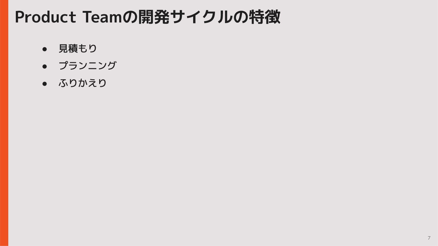 7 Product Teamの開発サイクルの特徴 • 見積もり • プランニング • ふりかえり