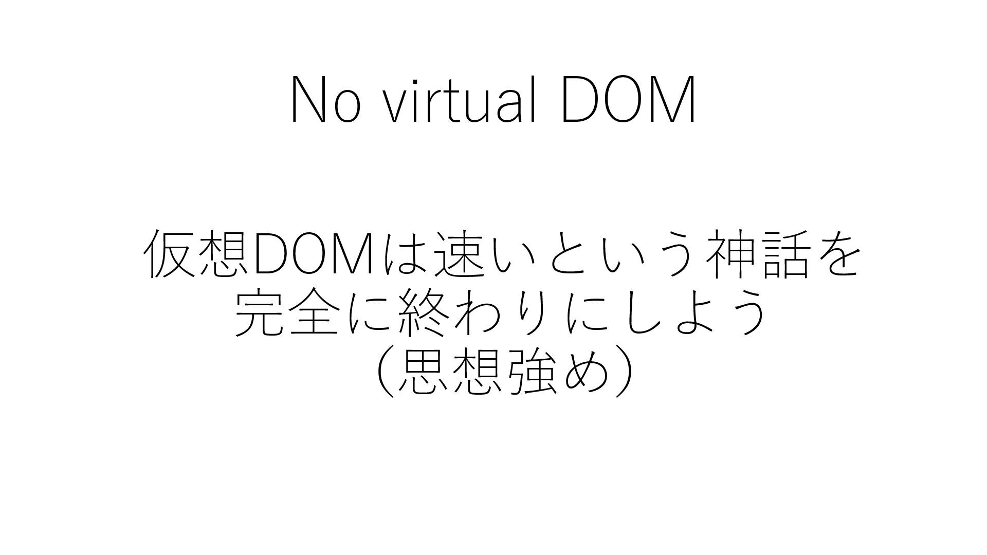 No virtual DOM 仮想DOMは速いという神話を 完全に終わりにしよう (思想強め)