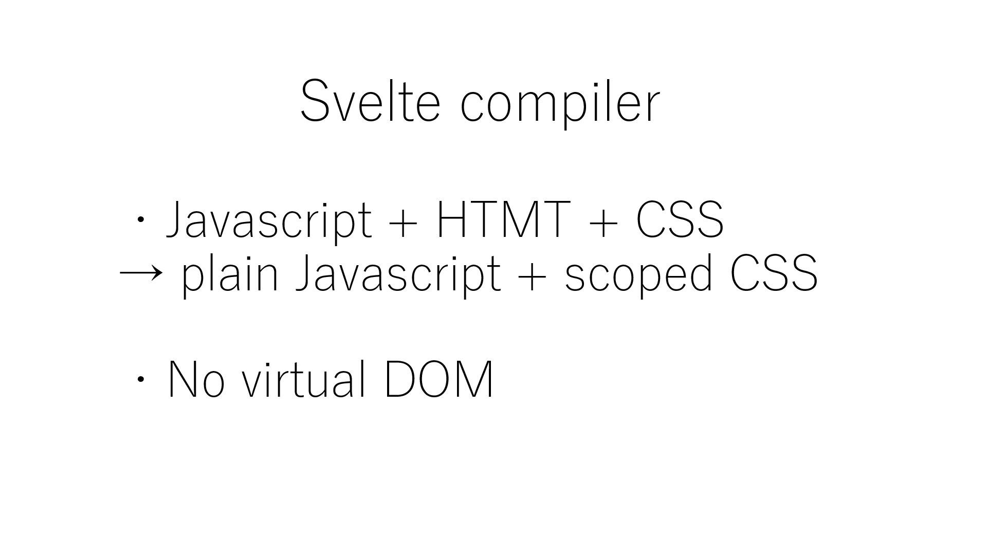Svelte compiler ・Javascript + HTMT + CSS → plain Javascript