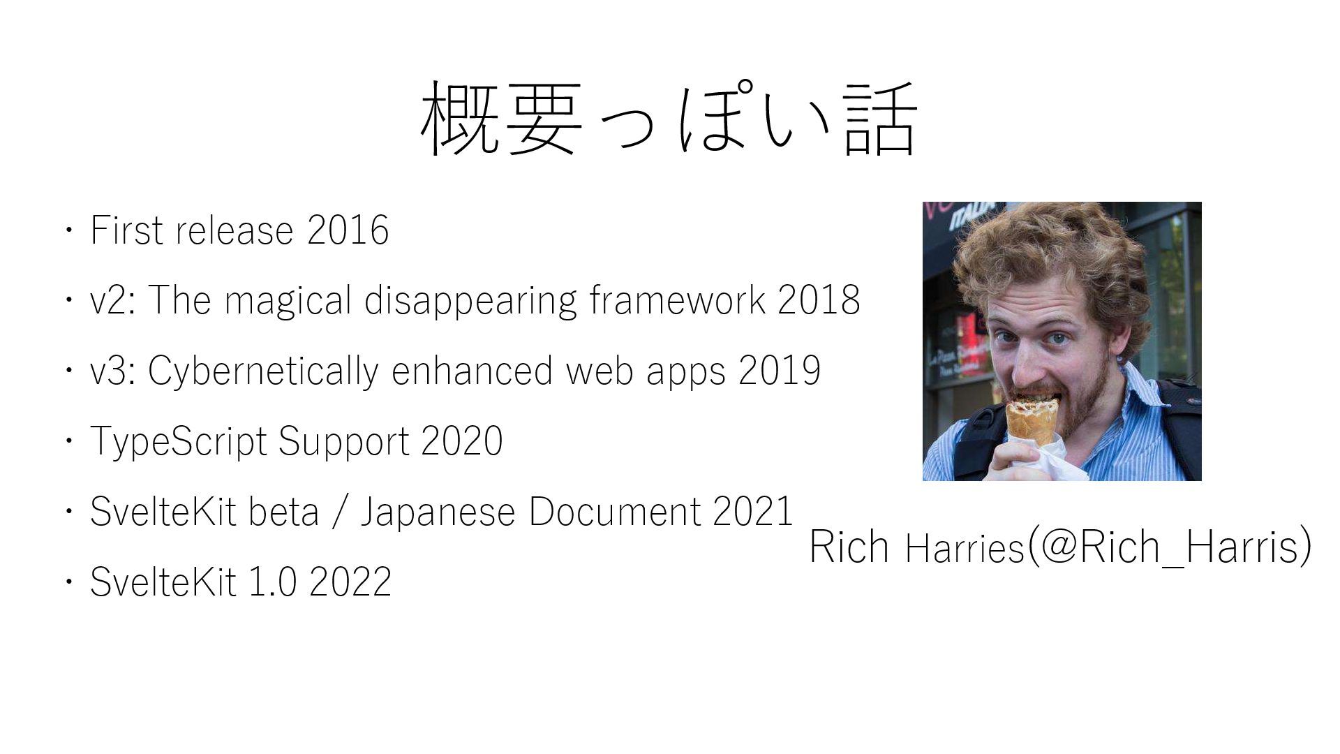 概要っぽい話 Rich Harries(@Rich_Harris) ・First release 2016 ・v2: The magical disappearing