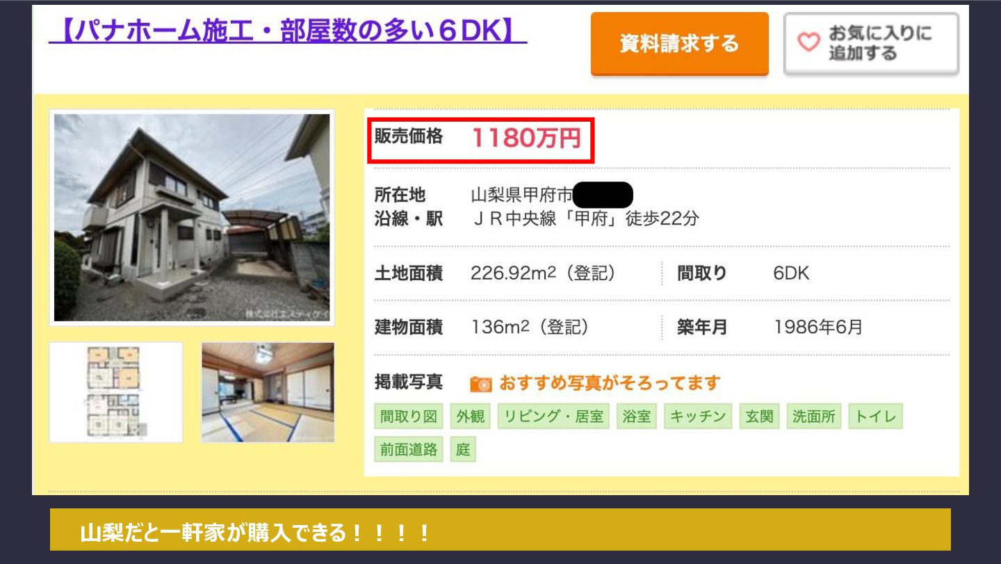山梨だと一軒家が購入できる!!!!