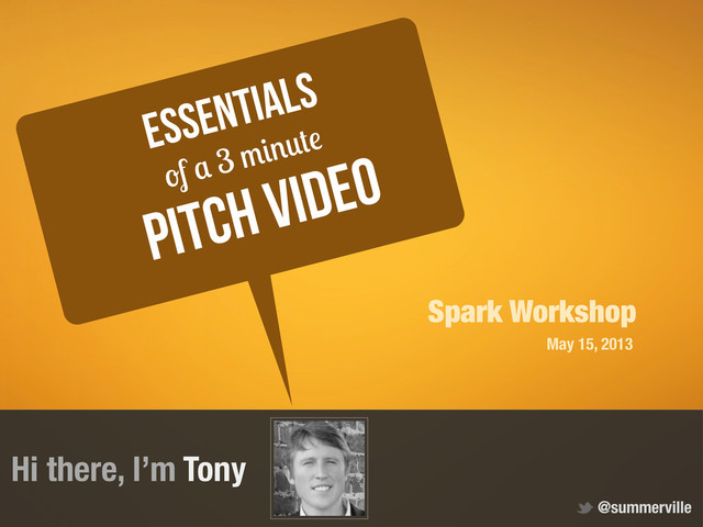 Hi there, I’m Tony Pitch video Essentials f 3 @summerville