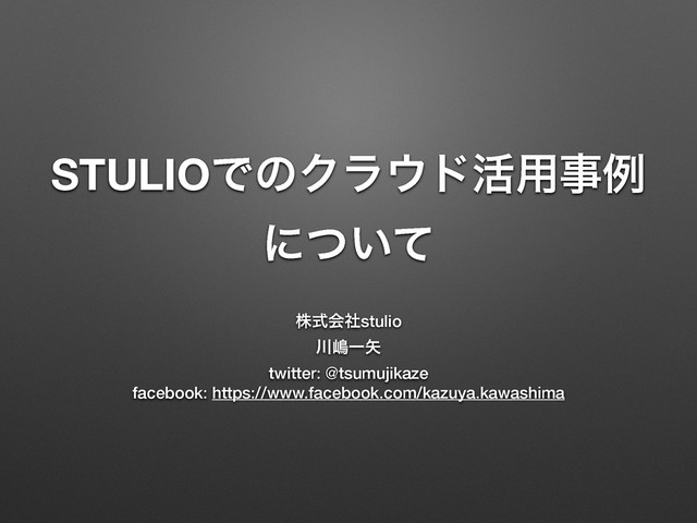 STULIOͰͷΫϥυ׆༻ࣄྫ ʹ͍ͭͯ גࣜձࣾstulio ౢҰ twitter: @tsumujikaze facebook: https://www.facebook.com/kazuya.kawashima