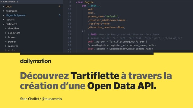 name: String! ingredients: [ingredient] cookingProcess: String } @Resolver("Query.recipe") async def resolver_hello(parent, args, ctx, info): return { “name”: “tartiflette”, “ingredients: [“potatoes”, “…”] } 1. 2. 3. { “name”: “tartiflette”, “ingredients: [“potatoes”, “onion”, “cheese”], “cookingProcess”: “30 minutes au four” }