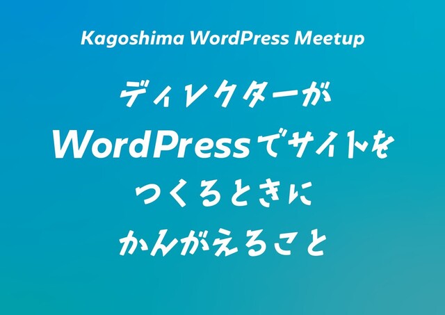 Kagoshima WordPress Meetup ຖ݄ୈೋਫ༵d ࣍ճ ݄ ਫ
