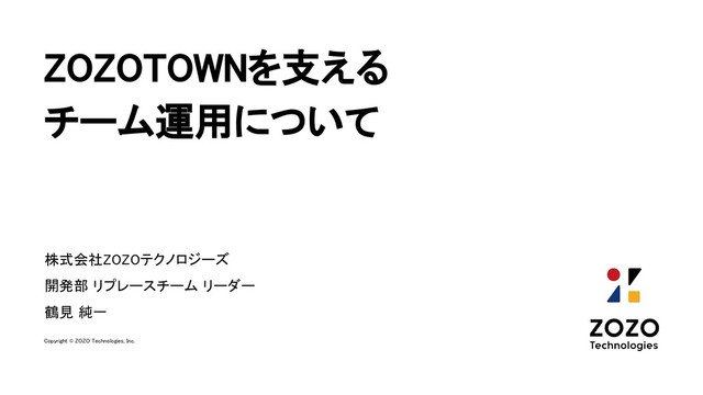 ZOZOTOWNを支える チーム運用について 株式会社ZOZOテクノロジーズ 開発部 リプレースチーム リーダー 鶴見 純一 Copyright ©
