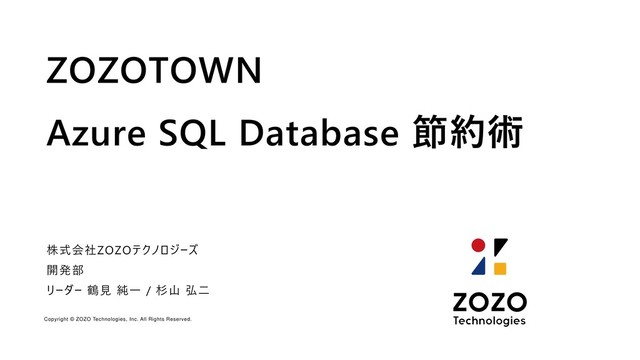 リーダー 鶴見 純一 / 杉山 弘二 ZOZOTOWN Azure SQL Database 節約術