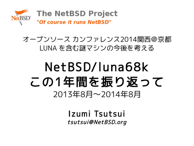 NetBSD/luna68k この1年間を振り返って 2013年8月〜2014年8月 オープンソース カンファレンス2014関西@京都 LUNA を含む謎マシンの今後を考える Izumi Tsutsui