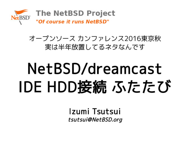 NetBSD/dreamcast IDE HDD接続 ふたたび オープンソース カンファレンス2016東京秋 実は半年放置してるネタなんです Izumi Tsutsui