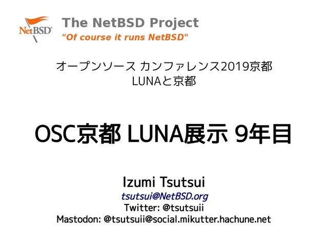 OSC2019 京都の NetBSDセミナーで発表した『OSC京都 LUNA展示 9年目』のスライドです。
