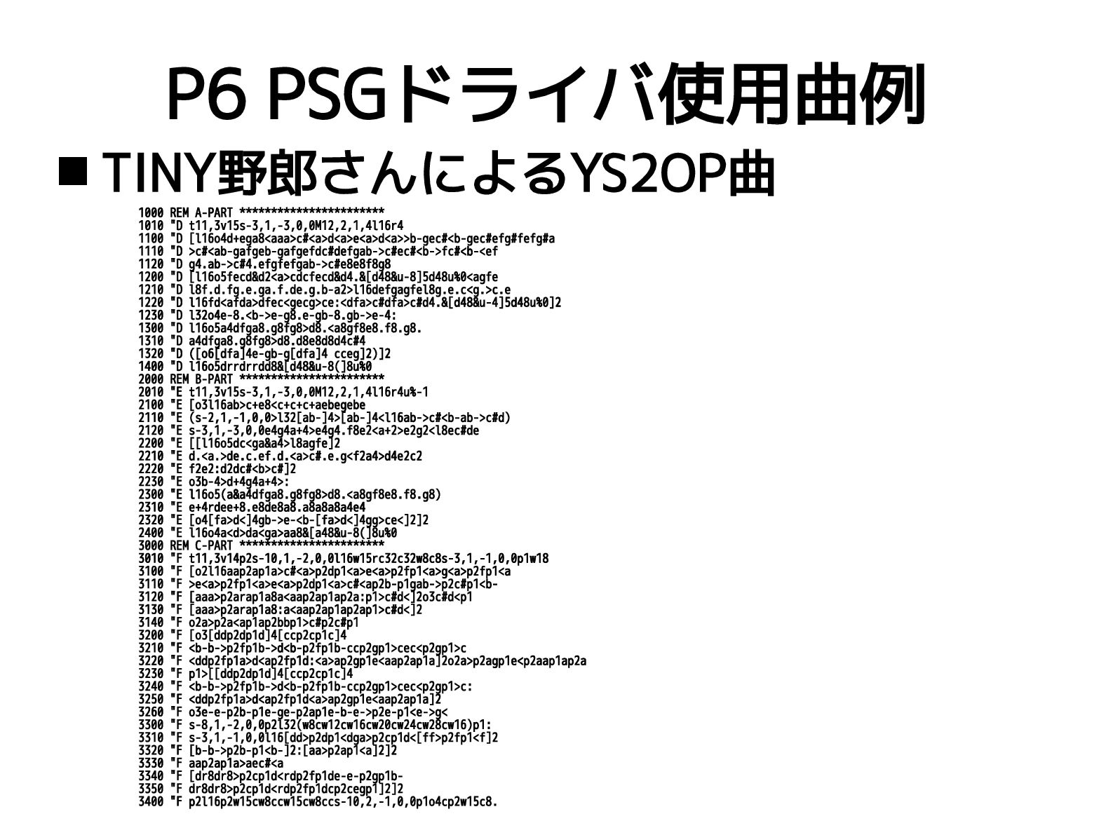 t11,3v15s-3,1,-3,0,0M12,2,1,4l16r4 1100 "D [l16o4d+ega8<aaa>c#<a>d<a>e<a>d<a>>b-gec#<b-gec#efg#fefg#a 1110 "D >c#<ab-gafgeb-gafgefdc#defgab->c#ec#<b->fc#<b-<ef 1120 "D g4.ab->c#4.efgfefgab->c#e8e8f8g8 1200 "D [l16o5fecd&d2<a>cdcfecd&d4.&[d48&u-8]5d48u%0<agfe 1210 "D l8f.d.fg.e.ga.f.de.g.b-a2>l16defgagfel8g.e.c<g.>c.e 1220 "D l16fd<afda>dfec<gecg>ce:<dfa>c#dfa>c#d4.&[d48&u-4]5d48u%0]2 1230 "D l32o4e-8.<b->e-g8.e-gb-8.gb->e-4: 1300 "D l16o5a4dfga8.g8fg8>d8.<a8gf8e8.f8.g8. 1310 "D a4dfga8.g8fg8>d8.d8e8d8d4c#4 1320 "D ([o6[dfa]4e-gb-g[dfa]4 cceg]2)]2 1400 "D l16o5drrdrrdd8&[d48&u-8(]8u%0 2000 REM B-PART *********************** 2010 "E t11,3v15s-3,1,-3,0,0M12,2,1,4l16r4u%-1 2100 "E [o3l16ab>c+e8<c+c+c+aebegebe 2110 "E (s-2,1,-1,0,0>l32[ab-]4>[ab-]4<l16ab->c#<b-ab->c#d) 2120 "E s-3,1,-3,0,0e4g4a+4>e4g4.f8e2<a+2>e2g2<l8ec#de 2200 "E [[l16o5dc<ga&a4>l8agfe]2 2210 "E d.<a.>de.c.ef.d.<a>c#.e.g<f2a4>d4e2c2 2220 "E f2e2:d2dc#<b>c#]2 2230 "E o3b-4>d+4g4a+4>: 2300 "E l16o5(a&a4dfga8.g8fg8>d8.<a8gf8e8.f8.g8) 2310 "E e+4rdee+8.e8de8a8.a8a8a8a4e4 2320 "E [o4[fa>d<]4gb->e-<b-[fa>d<]4gg>ce<]2]2 2400 "E l16o4a<d>da<ga>aa8&[a48&u-8(]8u%0 3000 REM C-PART *********************** 3010 "F t11,3v14p2s-10,1,-2,0,0l16w15rc32c32w8c8s-3,1,-1,0,0p1w18 3100 "F [o2l16aap2ap1a>c#<a>p2dp1<a>e<a>p2fp1<a>g<a>p2fp1<a 3110 "F >e<a>p2fp1<a>e<a>p2dp1<a>c#<ap2b-p1gab->p2c#p1<b- 3120 "F [aaa>p2arap1a8a<aap2ap1ap2a:p1>c#d<]2o3c#d<p1 3130 "F [aaa>p2arap1a8:a<aap2ap1ap2ap1>c#d<]2 3140 "F o2a>p2a<ap1ap2bbp1>c#p2c#p1 3200 "F [o3[ddp2dp1d]4[ccp2cp1c]4 3210 "F <b-b->p2fp1b->d<b-p2fp1b-ccp2gp1>cec<p2gp1>c 3220 "F <ddp2fp1a>d<ap2fp1d:<a>ap2gp1e<aap2ap1a]2o2a>p2agp1e<p2aap1ap2a 3230 "F p1>[[ddp2dp1d]4[ccp2cp1c]4 3240 "F <b-b->p2fp1b->d<b-p2fp1b-ccp2gp1>cec<p2gp1>c: 3250 "F <ddp2fp1a>d<ap2fp1d<a>ap2gp1e<aap2ap1a]2 3260 "F o3e-e-p2b-p1e-ge-p2ap1e-b-e->p2e-p1<e->g< 3300 "F s-8,1,-2,0,0p2l32(w8cw12cw16cw20cw24cw28cw16)p1: 3310 "F s-3,1,-1,0,0l16[dd>p2dp1<dga>p2cp1d<[ff>p2fp1<f]2 3320 "F [b-b->p2b-p1<b-]2:[aa>p2ap1<a]2]2 3330 "F aap2ap1a>aec#<a 3340 "F [dr8dr8>p2cp1d<rdp2fp1de-e-p2gp1b- 3350 "F dr8dr8>p2cp1d<rdp2fp1dcp2cegp1]2]2 3400 "F p2l16p2w15cw8ccw15cw8ccs-10,2,-1,0,0p1o4cp2w15c8.