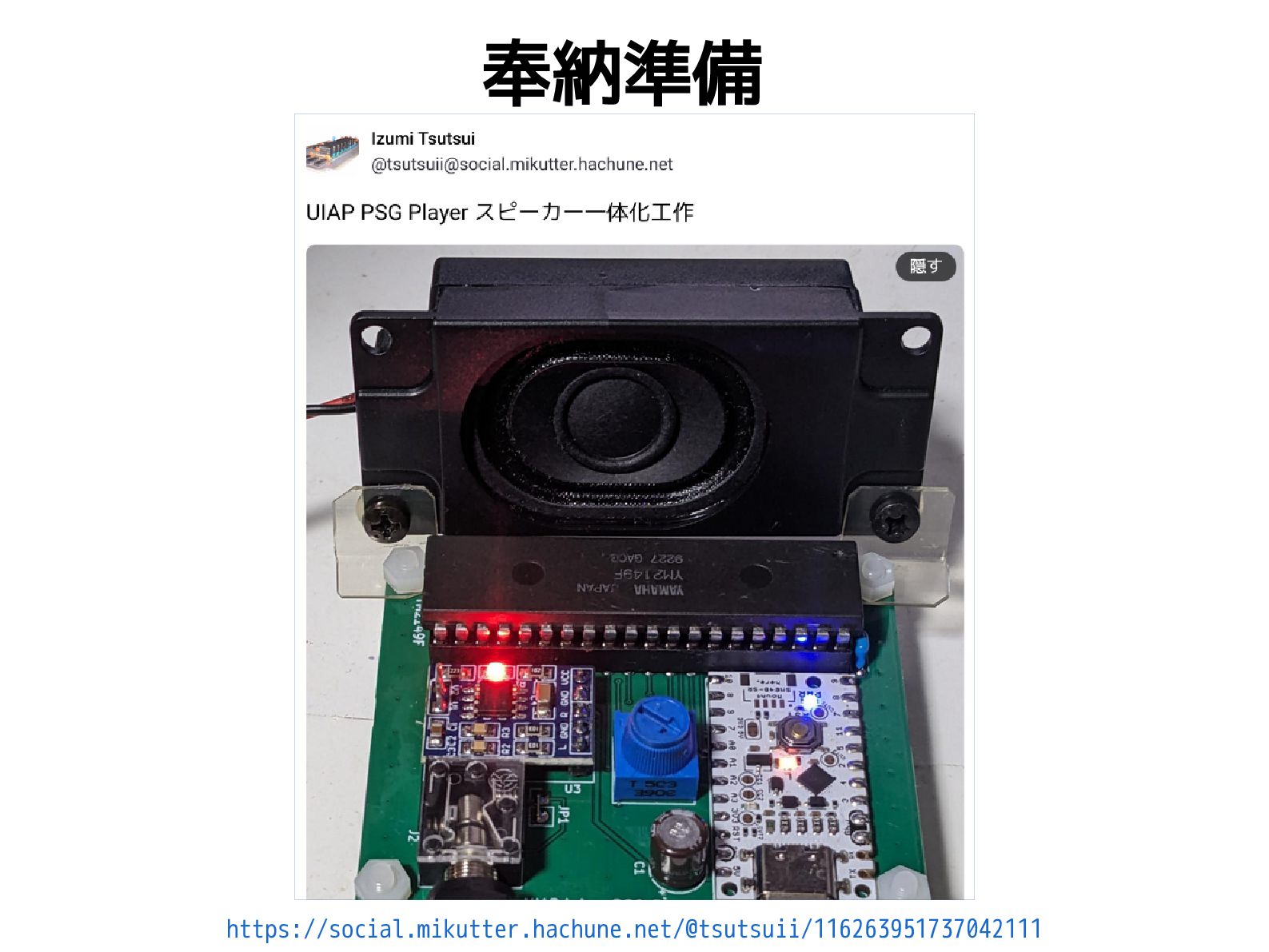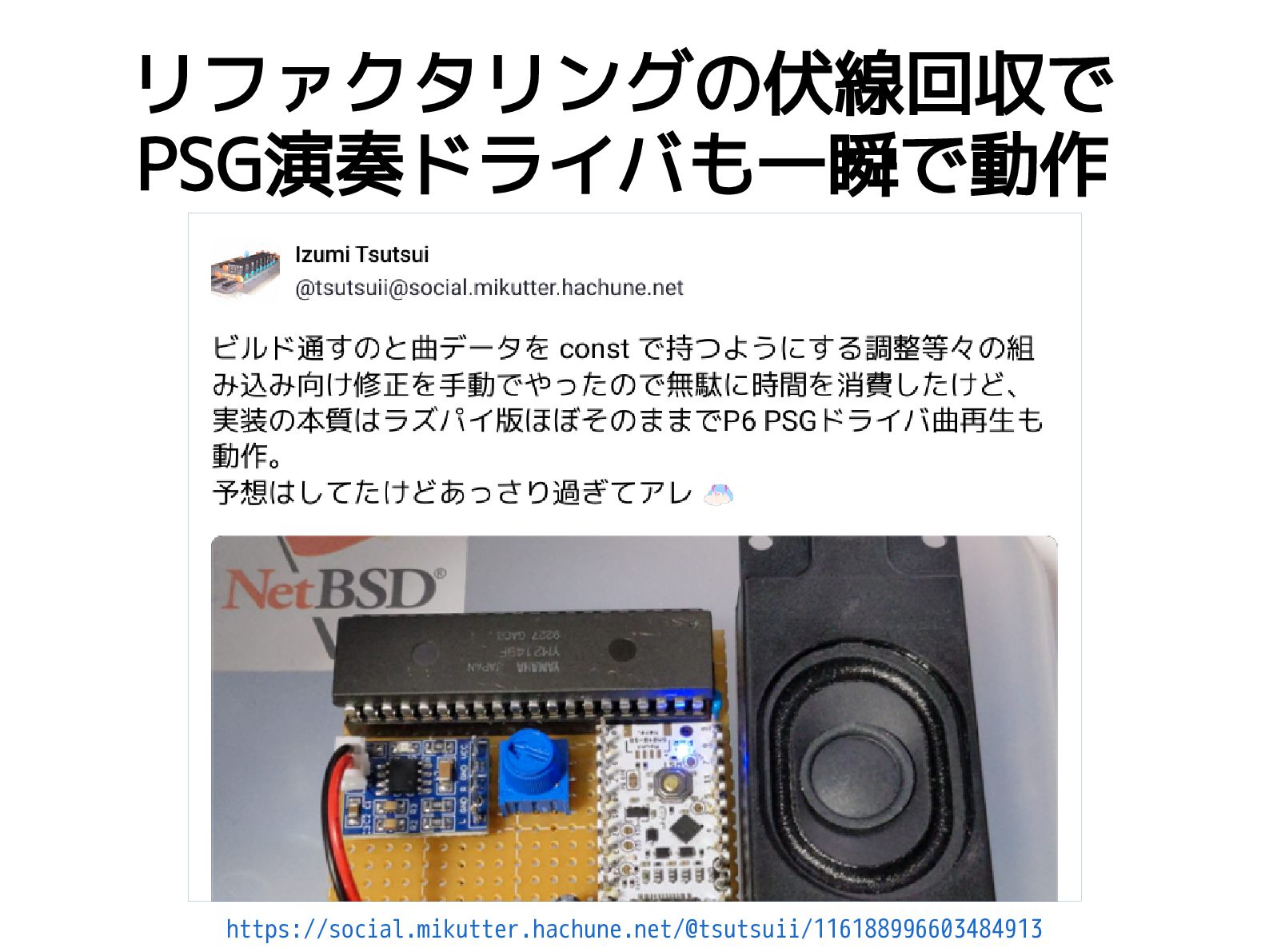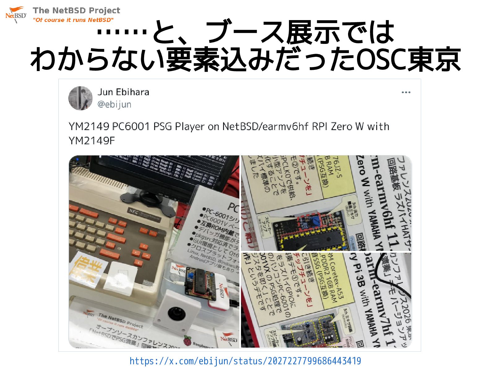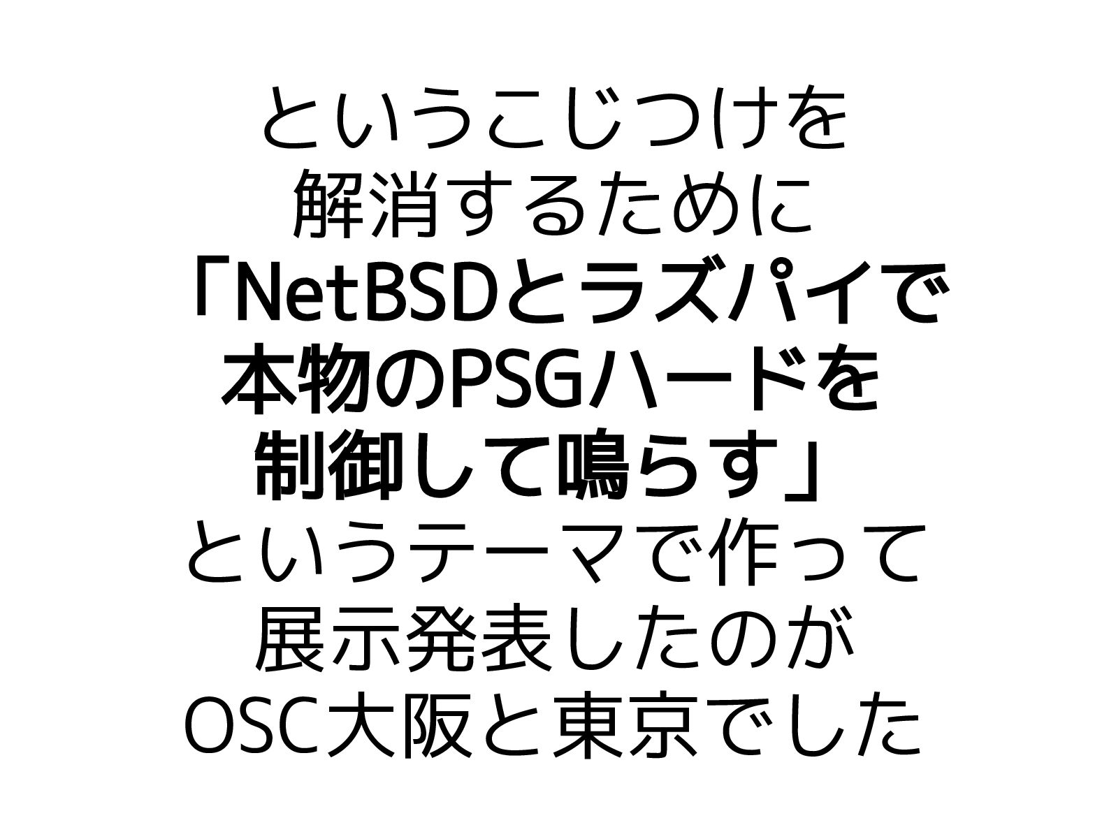 オープンソースカンファレンス 2026 Kagawa の「NetBSDのご紹介」のセミナーで発表した『OSC東京でいただいた UIAPduinoマイコンボードで PSG演奏と液晶ドッド絵デモ』のスライドです。(セミナー発表時から一部誤記の修正をしています)