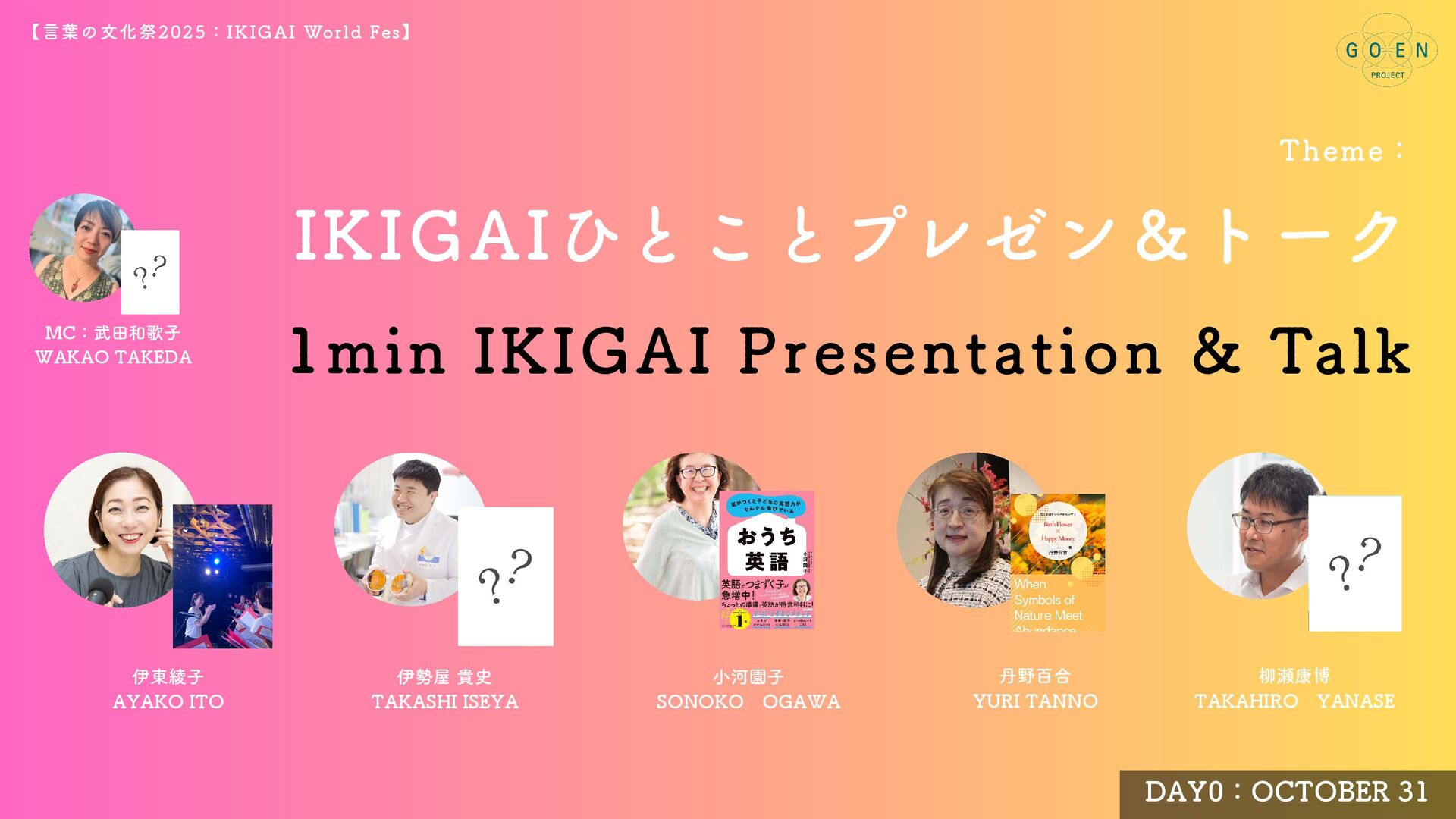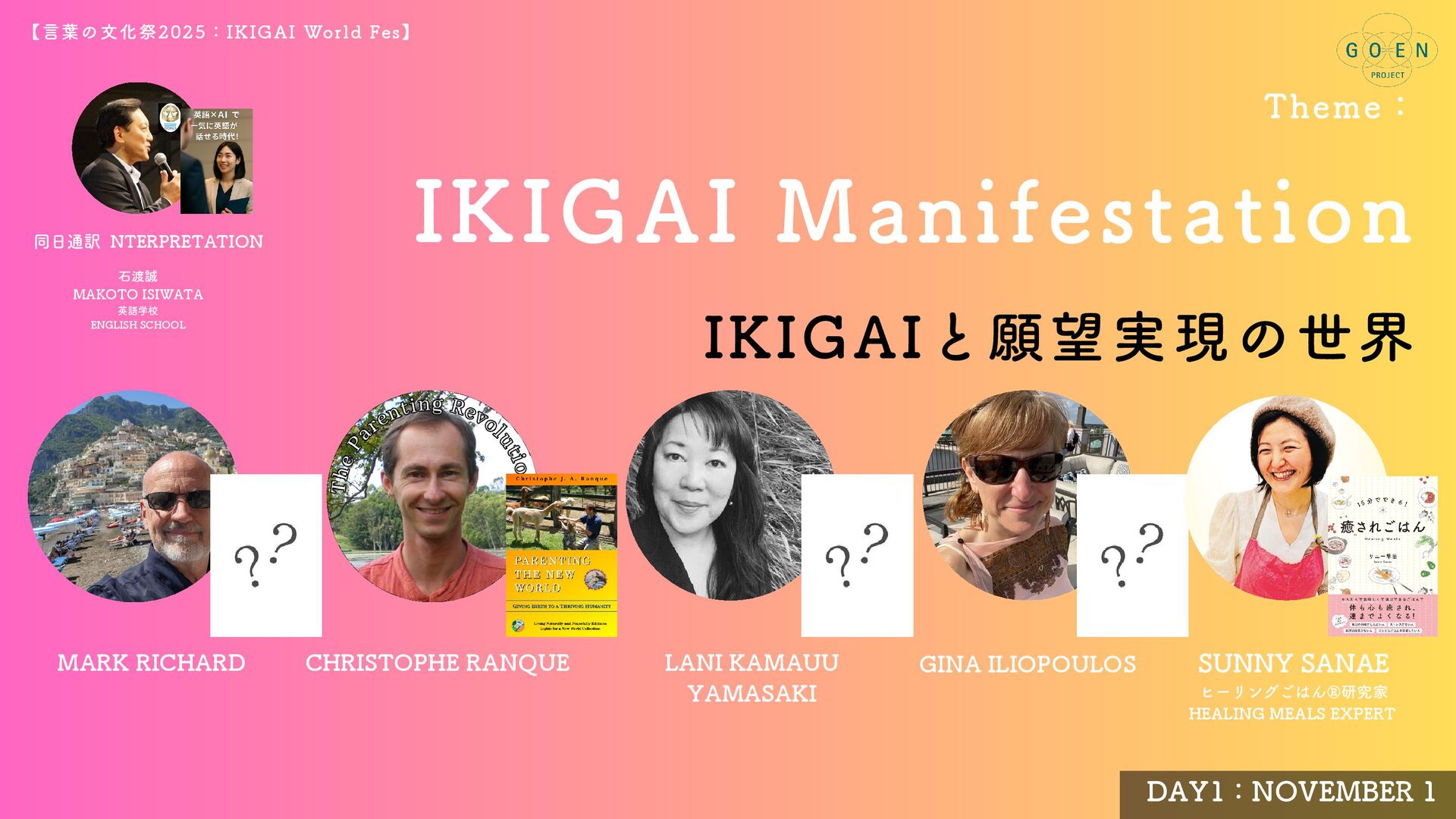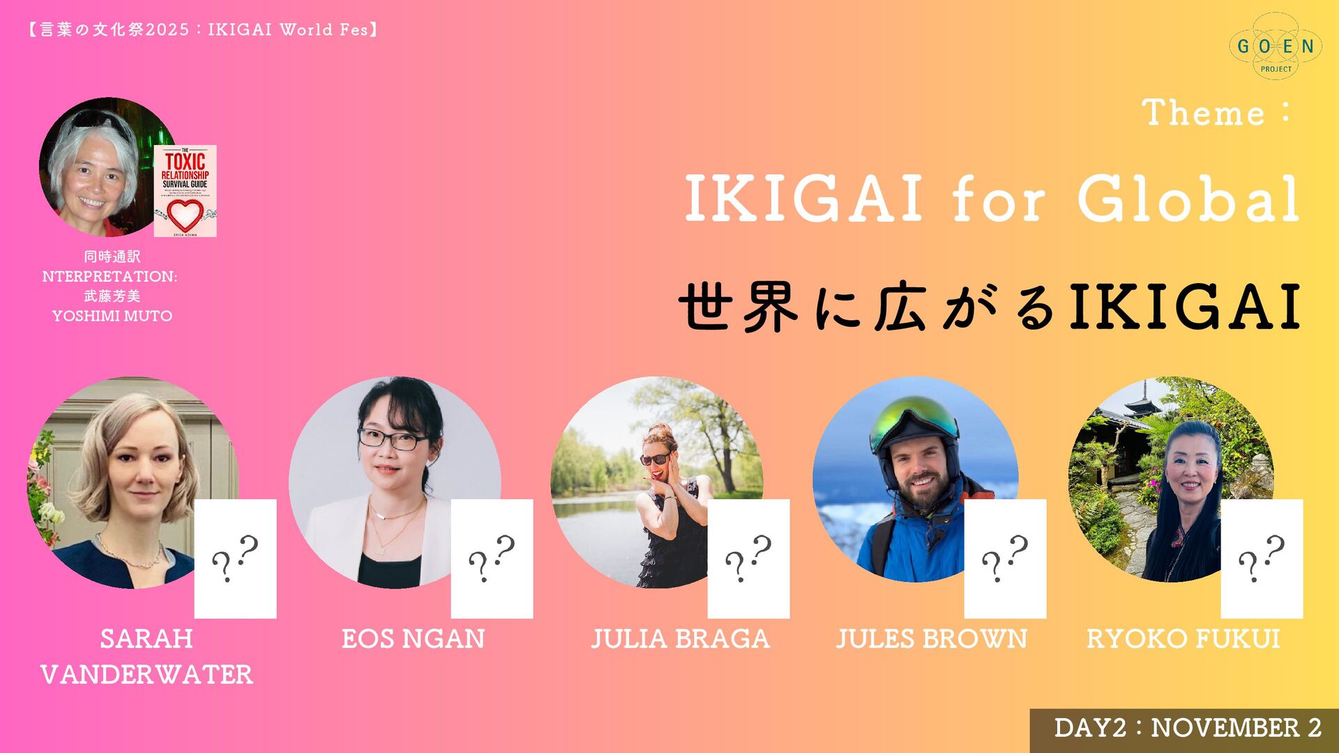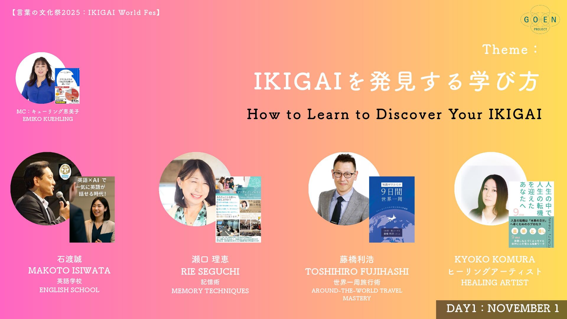 your IKIGAI — Find it, Expand it, and Make it Happen! For more details and to apply, please visit the special website below. 言葉の文化祭2025:IKIGAI World Fes Website[JP]