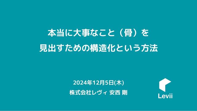 本当に大事なこと(骨)を 見出すための構造化という方法 2024年12月5日(木) 株式会社レヴィ 安西 剛