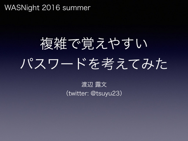 そこで、複雑で覚えやすいパスワードを考えてみた。
