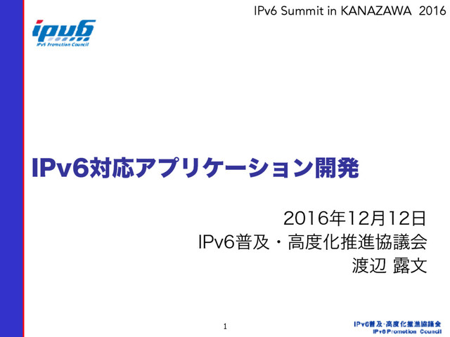 本スライドは、IPv6対応アプリケーションを開発するために必要な考え方、ポイントを完結にまとめ、具体的な対応例として、PHPのサンプルコード、AppleのIPv6対応を解説します。