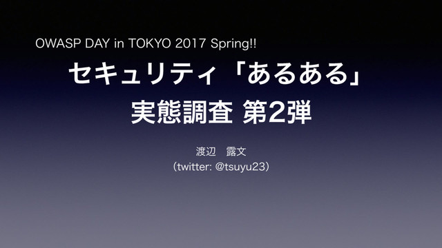 それを、OWASP DAY in TOKYO 2017 Spring に集まった皆さんの挙手で数値化した資料です。