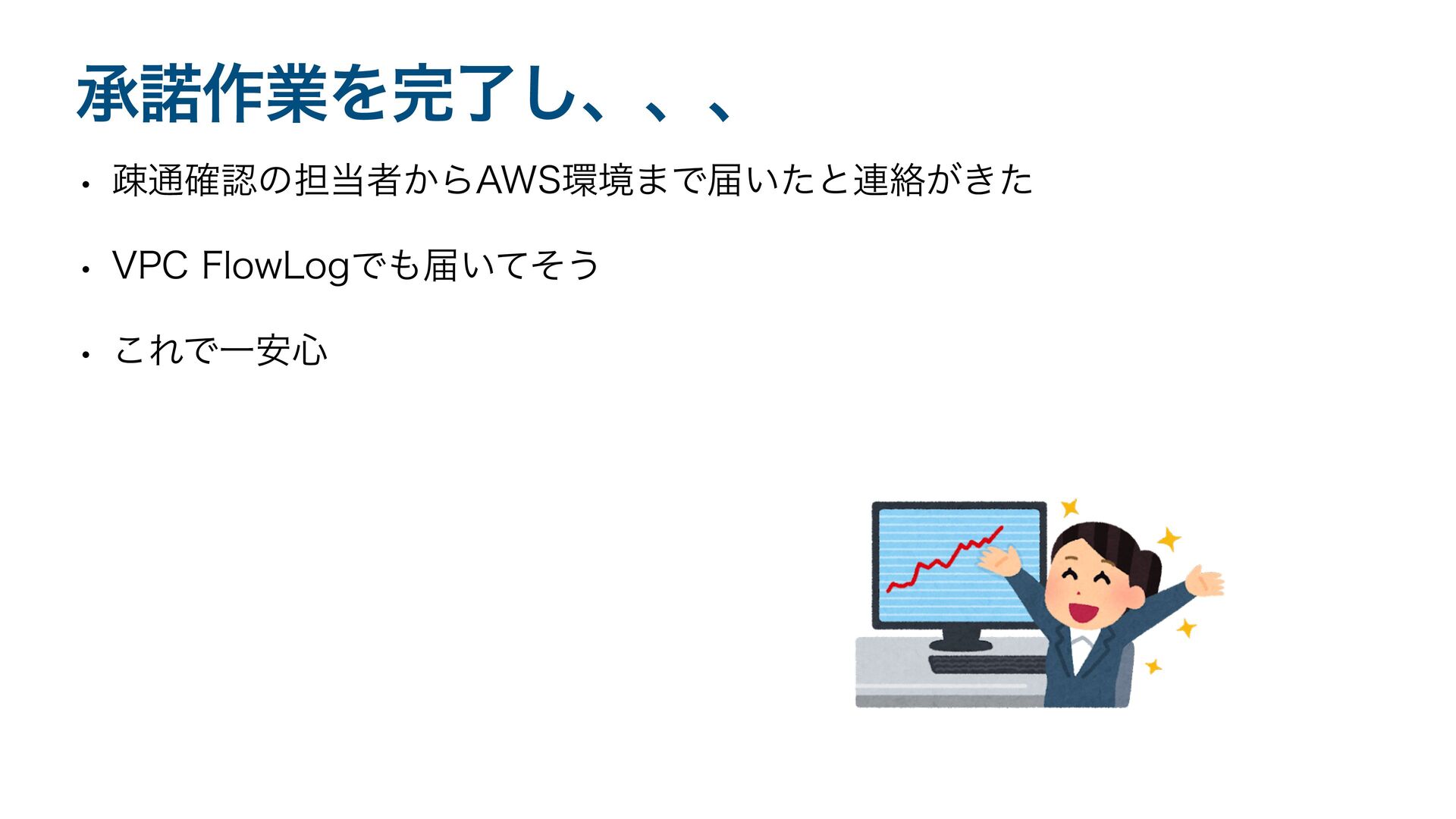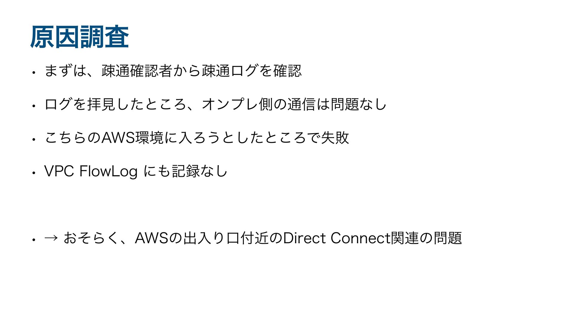 ݪҼௐࠪ w ·ͣɺૄ௨֬ೝऀ͔Βૄ௨ϩάΛ֬ೝ w ϩάΛഈݟͨ͠ͱ͜ΖɺΦϯϓϨଆͷ௨৴ͳ͠ w ͪ͜Βͷ"84ڥʹೖΖ͏ͱͨ͠ͱ͜ΖͰࣦഊ w 71$'MPX-PHʹهͳ͠ w